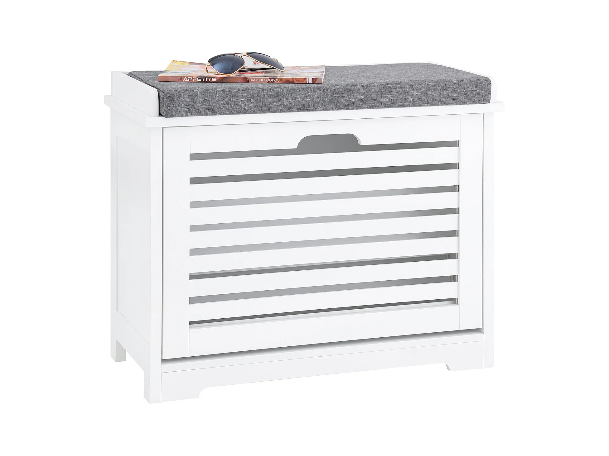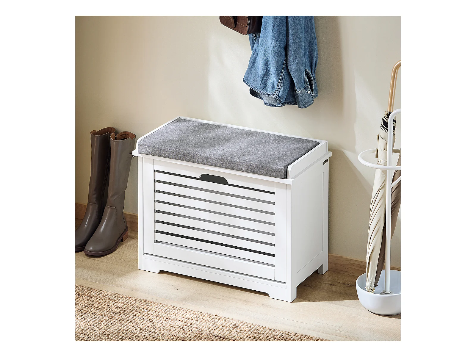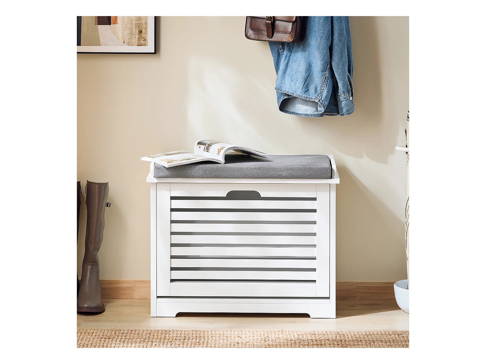 SoBuy Banc Chaussures Rangement Armoire à Chaussures Meuble d'entrée Coffre avec Abattant et Coussin pour Entrée Couloir Chambre Salon Blanc FSR184-K-W