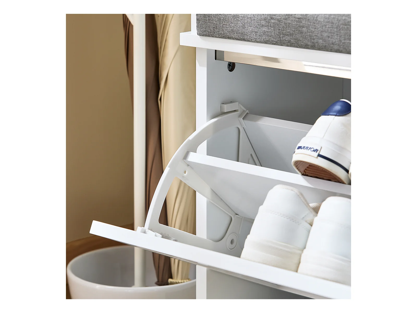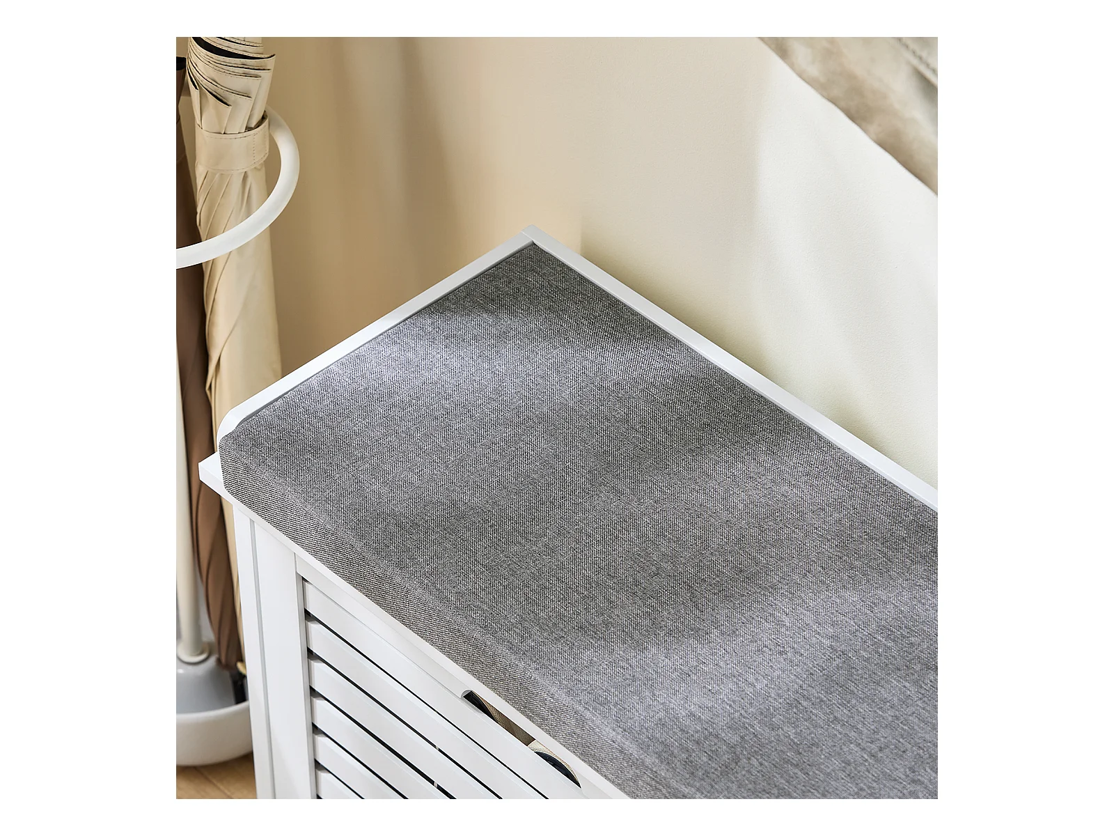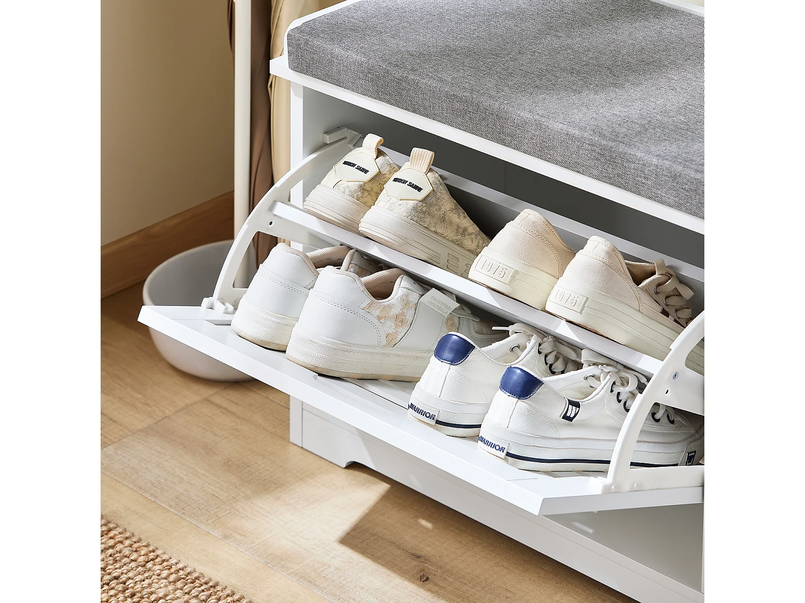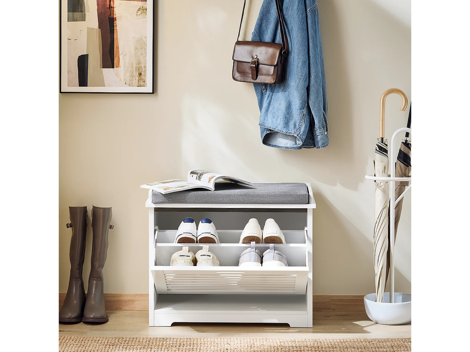 SoBuy Banc Chaussures Rangement Armoire à Chaussures Meuble d'entrée Coffre avec Abattant et Coussin pour Entrée Couloir Chambre Salon Blanc FSR184-K-W