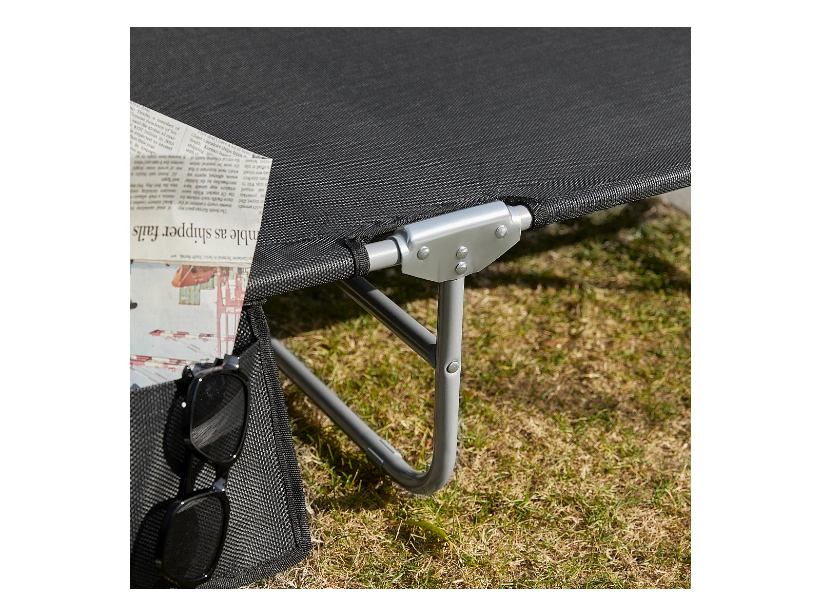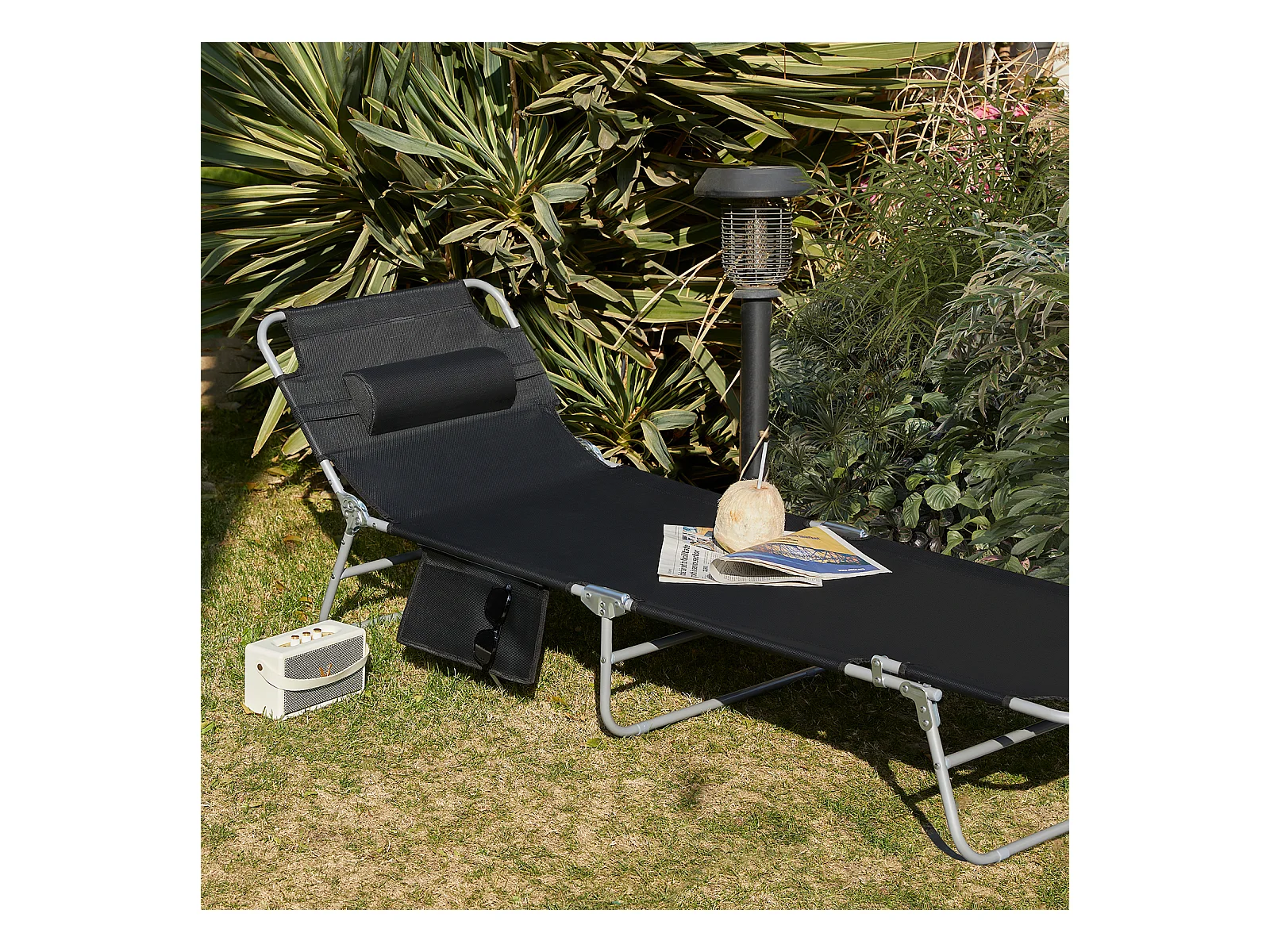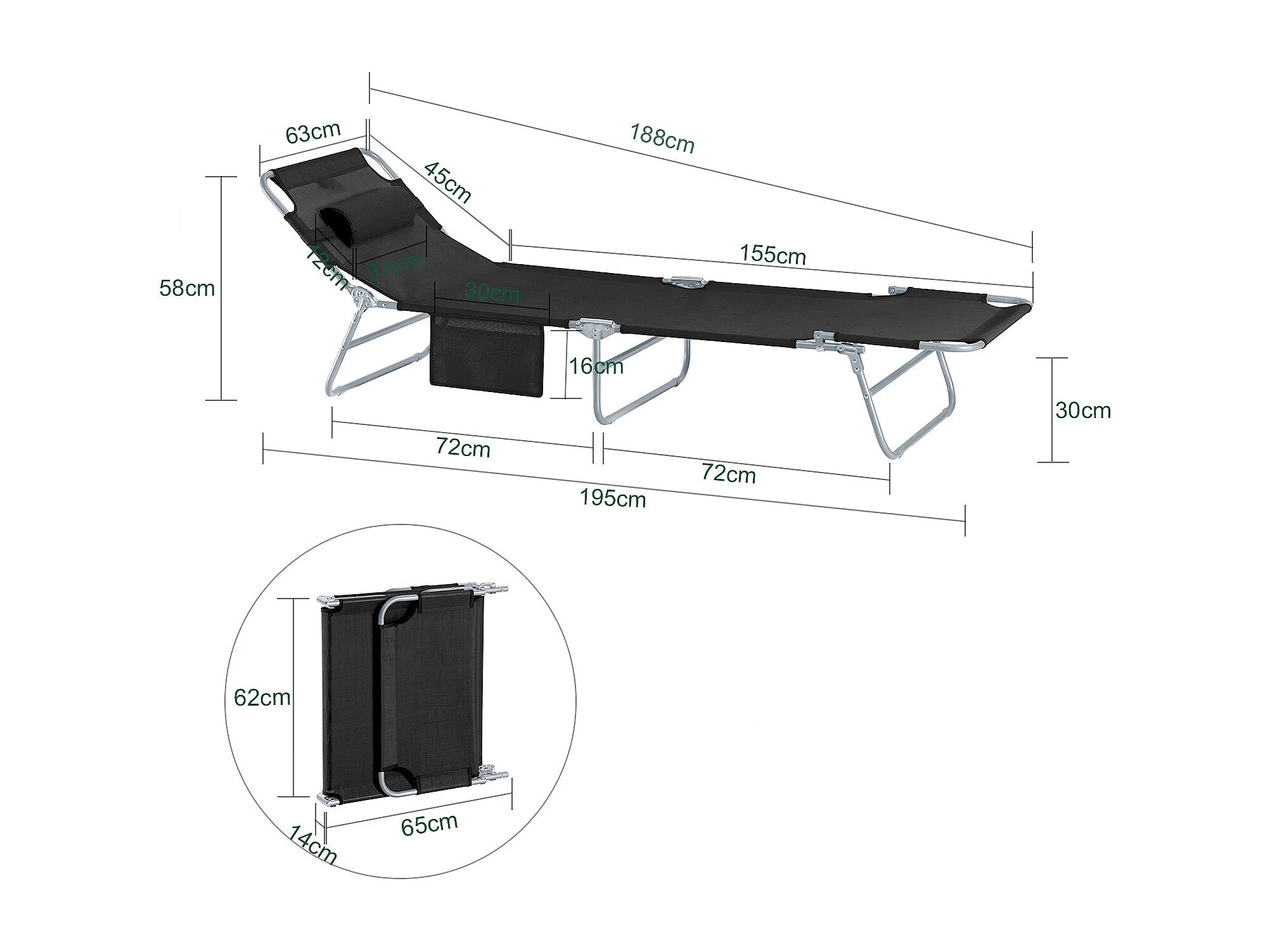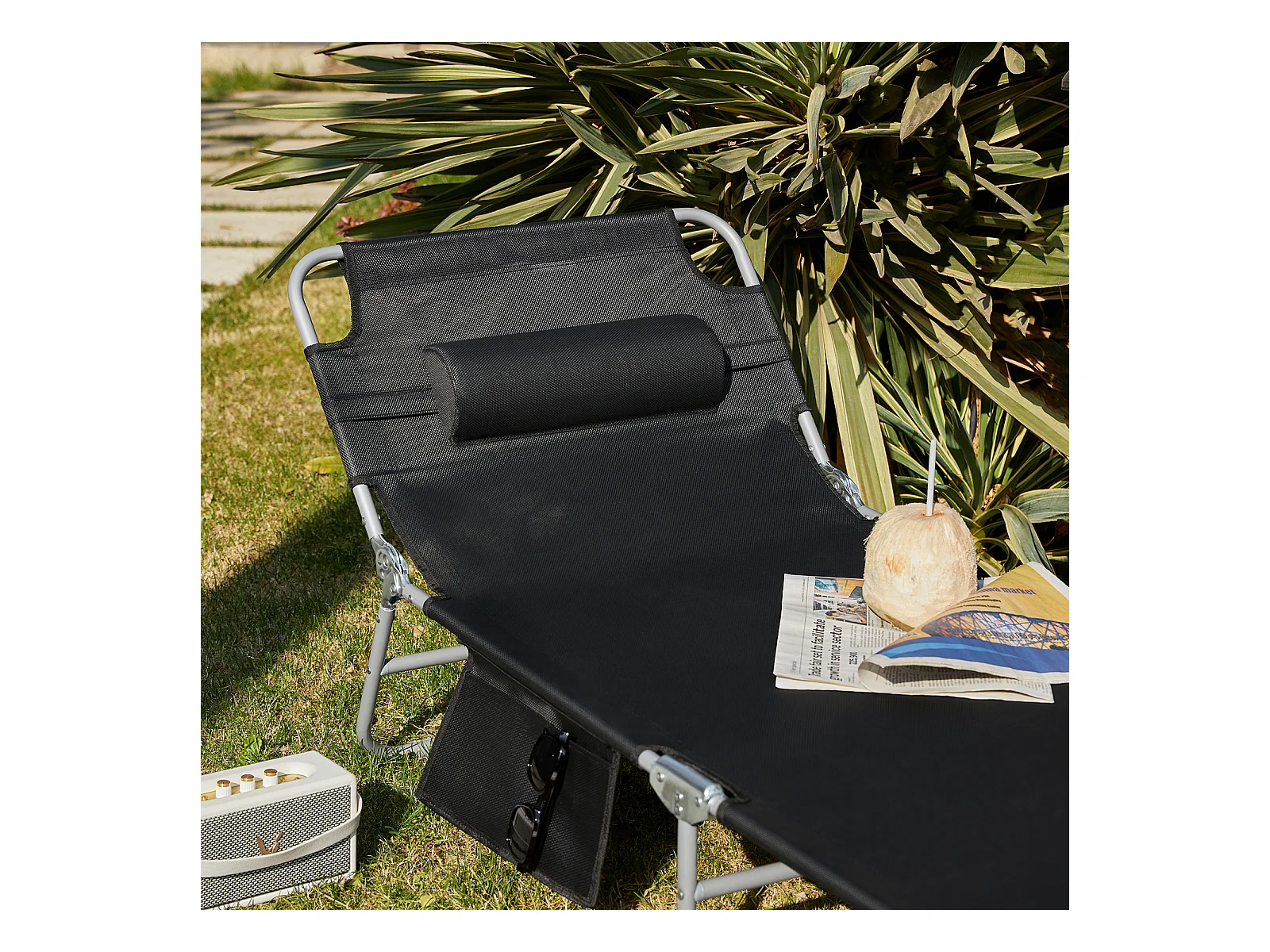 SoBuy Chaise Longue Pliable et Réglable, Transat de Jardin avec Appui-Tête et Pochette, Bain de Soleil, Charge 120 kg, Noir, OGS35-SCH