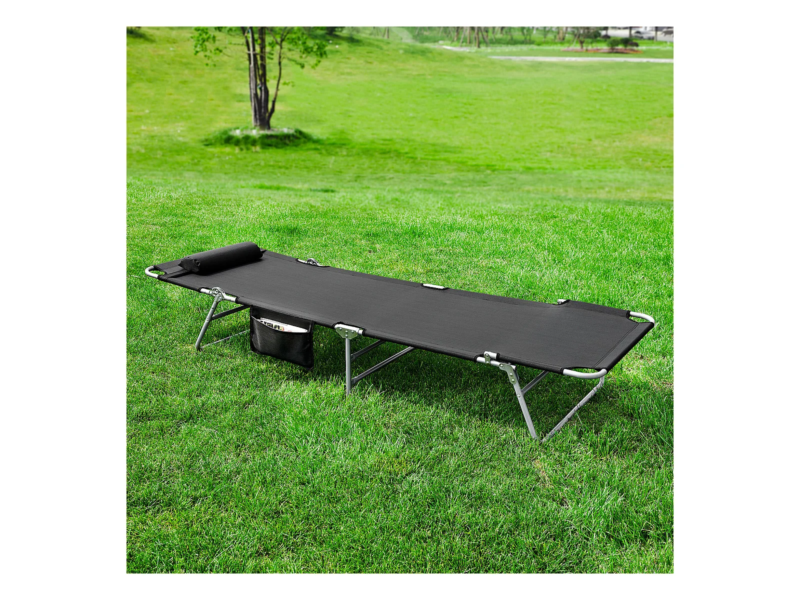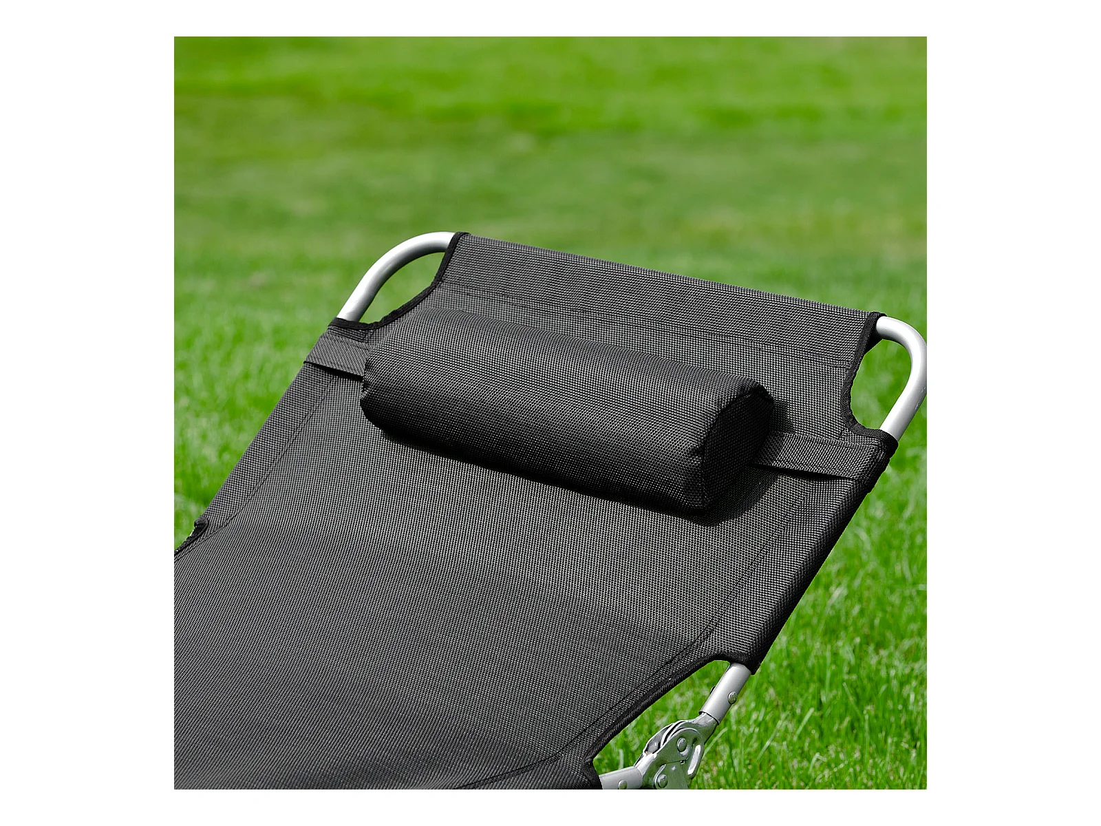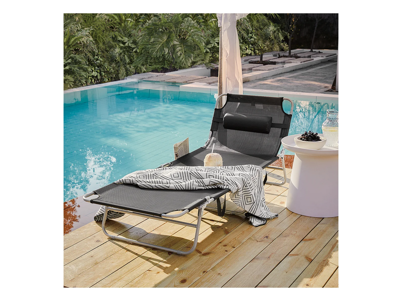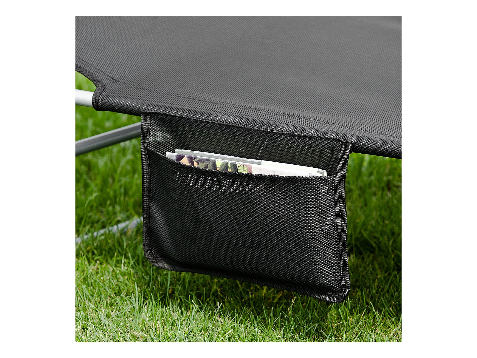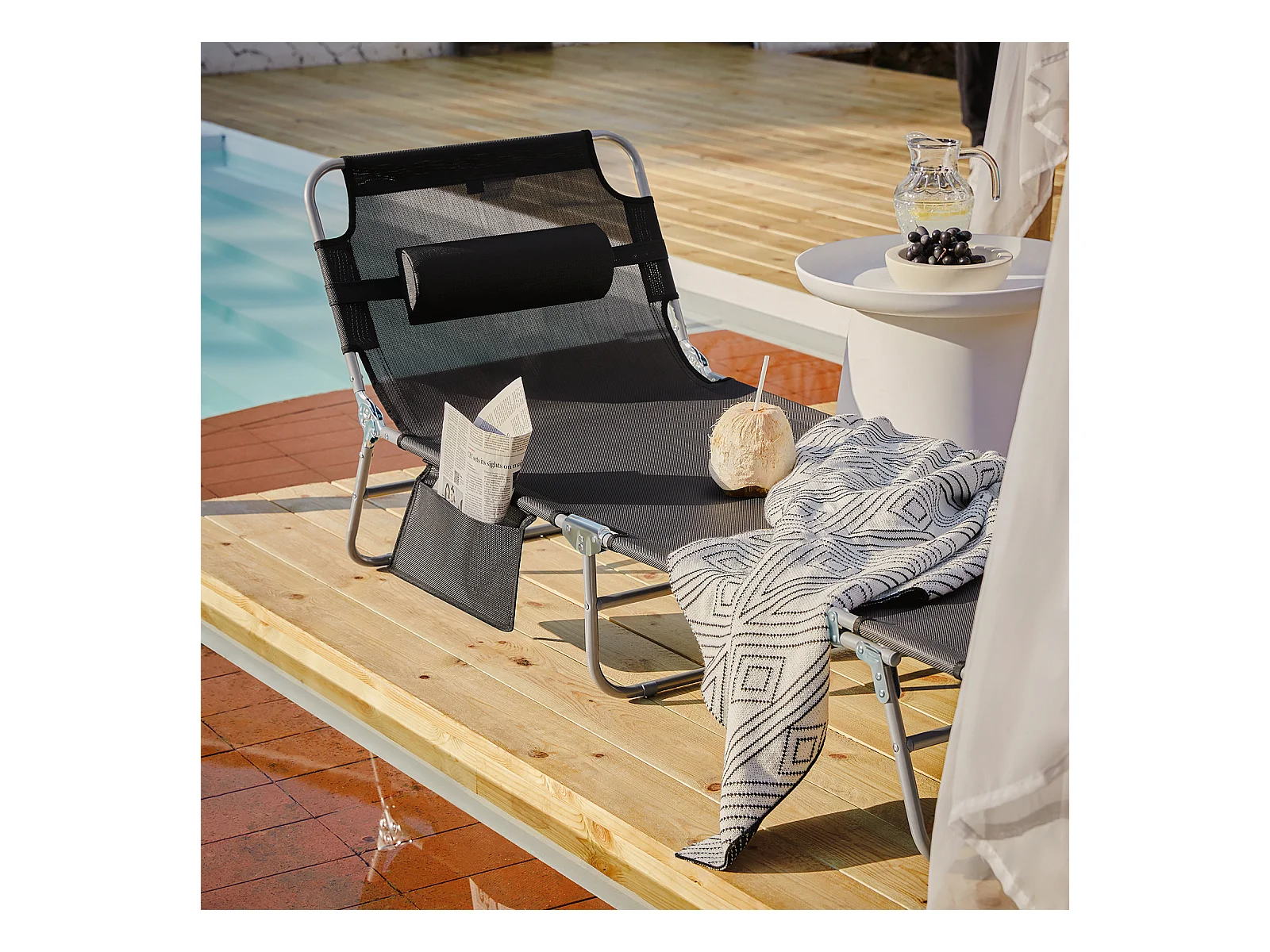 SoBuy Chaise Longue Pliable et Réglable, Transat de Jardin avec Appui-Tête et Pochette, Bain de Soleil, Charge 120 kg, Noir, OGS35-SCH