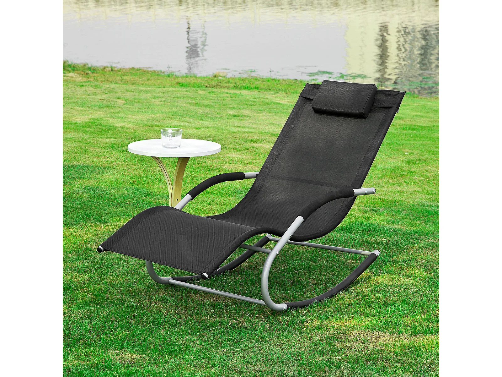 SoBuy Chaise Longue Transat de Jardin Bascule avec Appui-Tête Réglable, Pochette de Rangement et Repose-Pieds, Noir, OGS28-SCHx2
