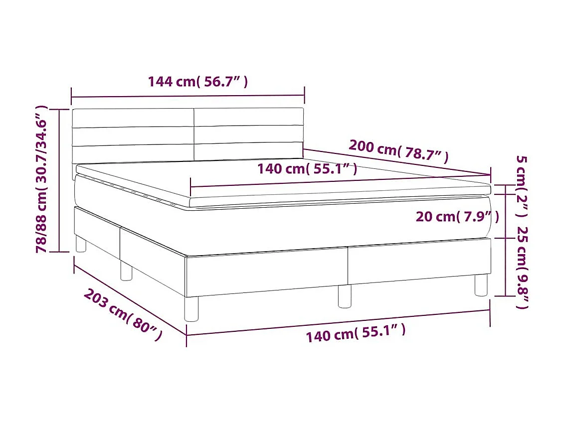Sommier à lattes de lit et matelas Bleu foncé 140x200cm Velours