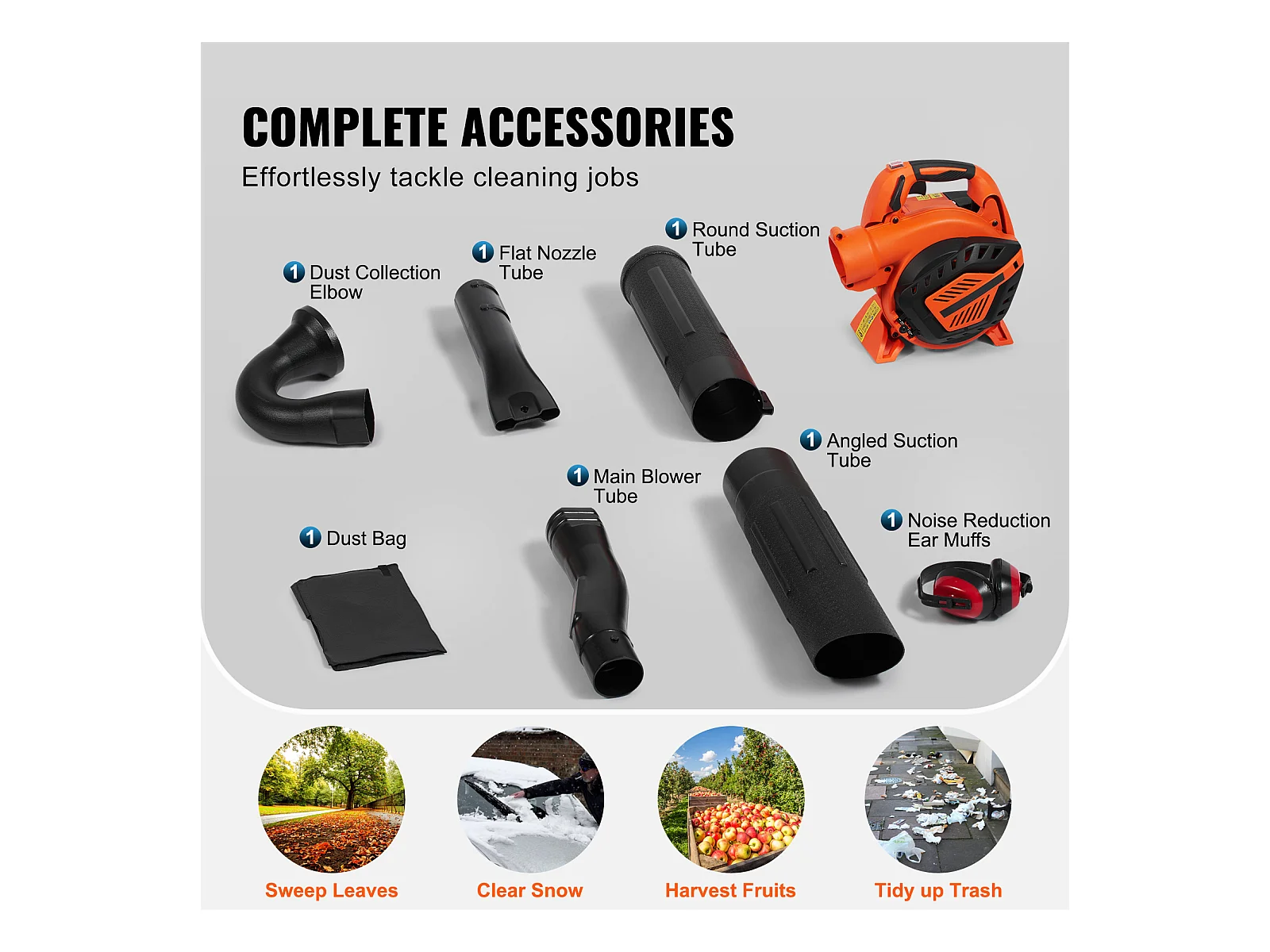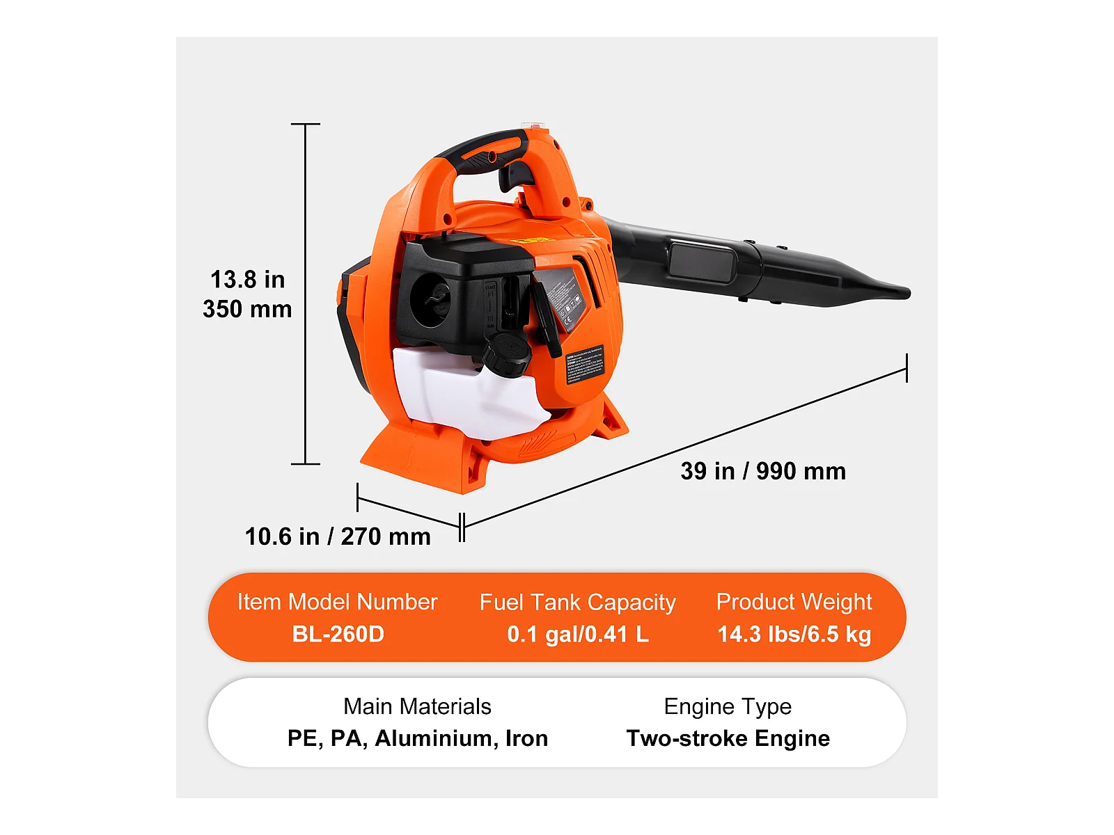 Souffleur de Feuilles SucceBuy 26CC, 425 CFM, Vitesse de 156 MPH, Entretien de la Pelouse, Portatif, Réservoir de Carburant