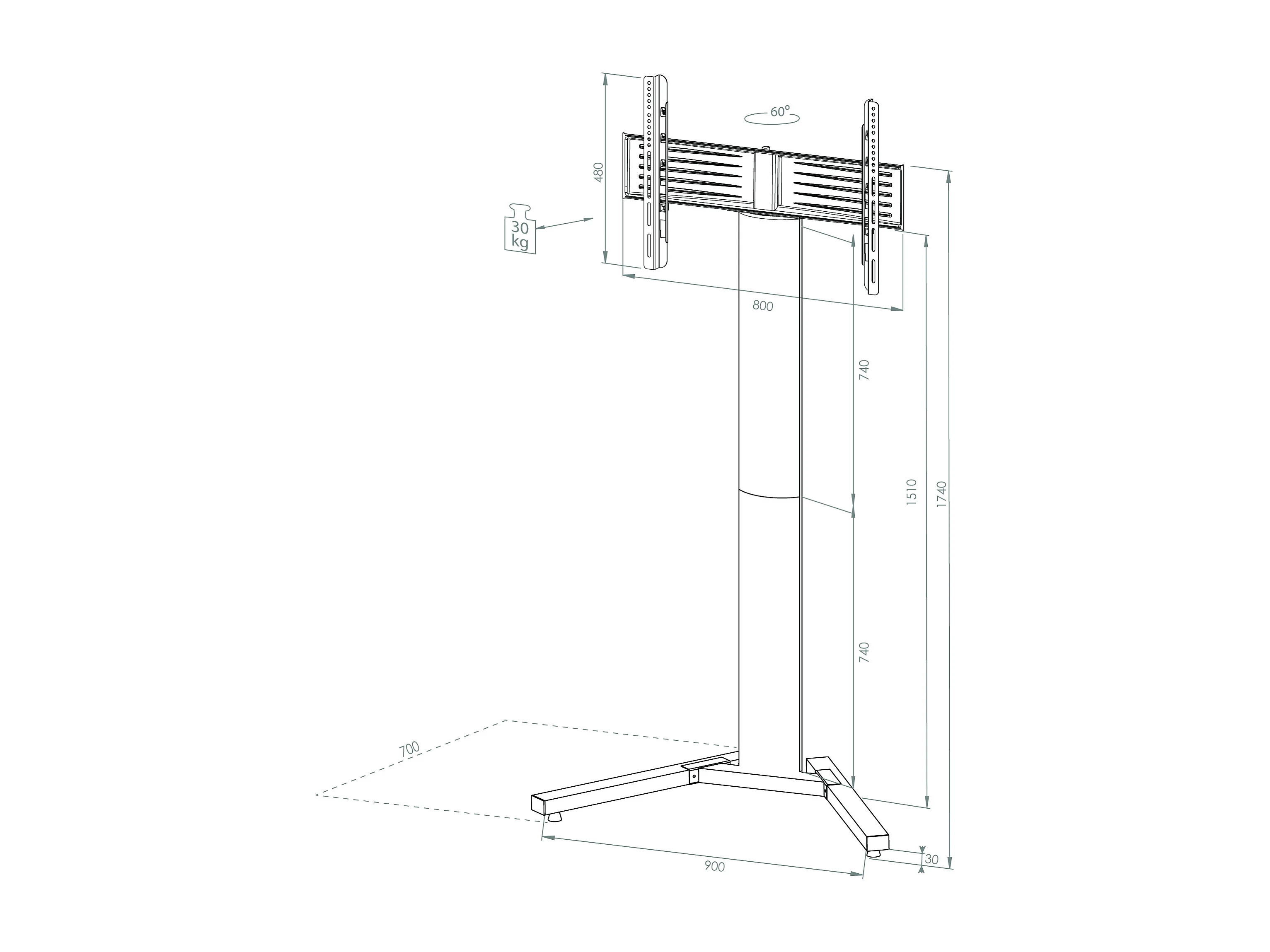TV stand feet Stadino Silver H. 174 x W. 90 x D. 72 cm