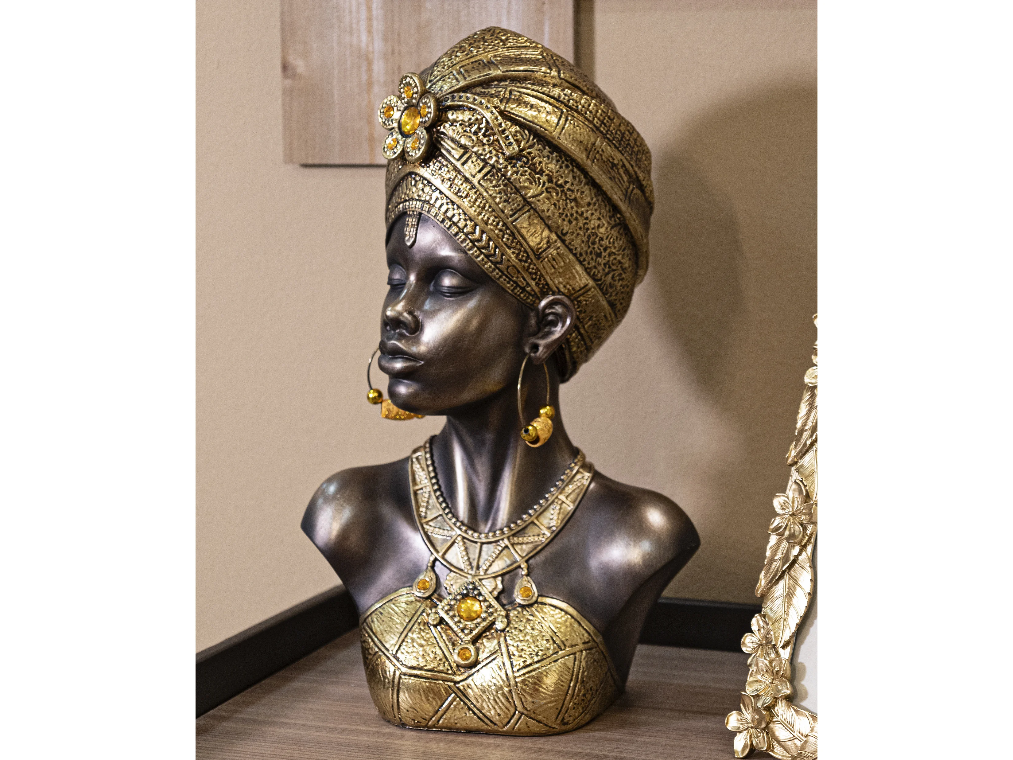 Buste Femme Africaine en Résine "Mumbasa" 39cm Or