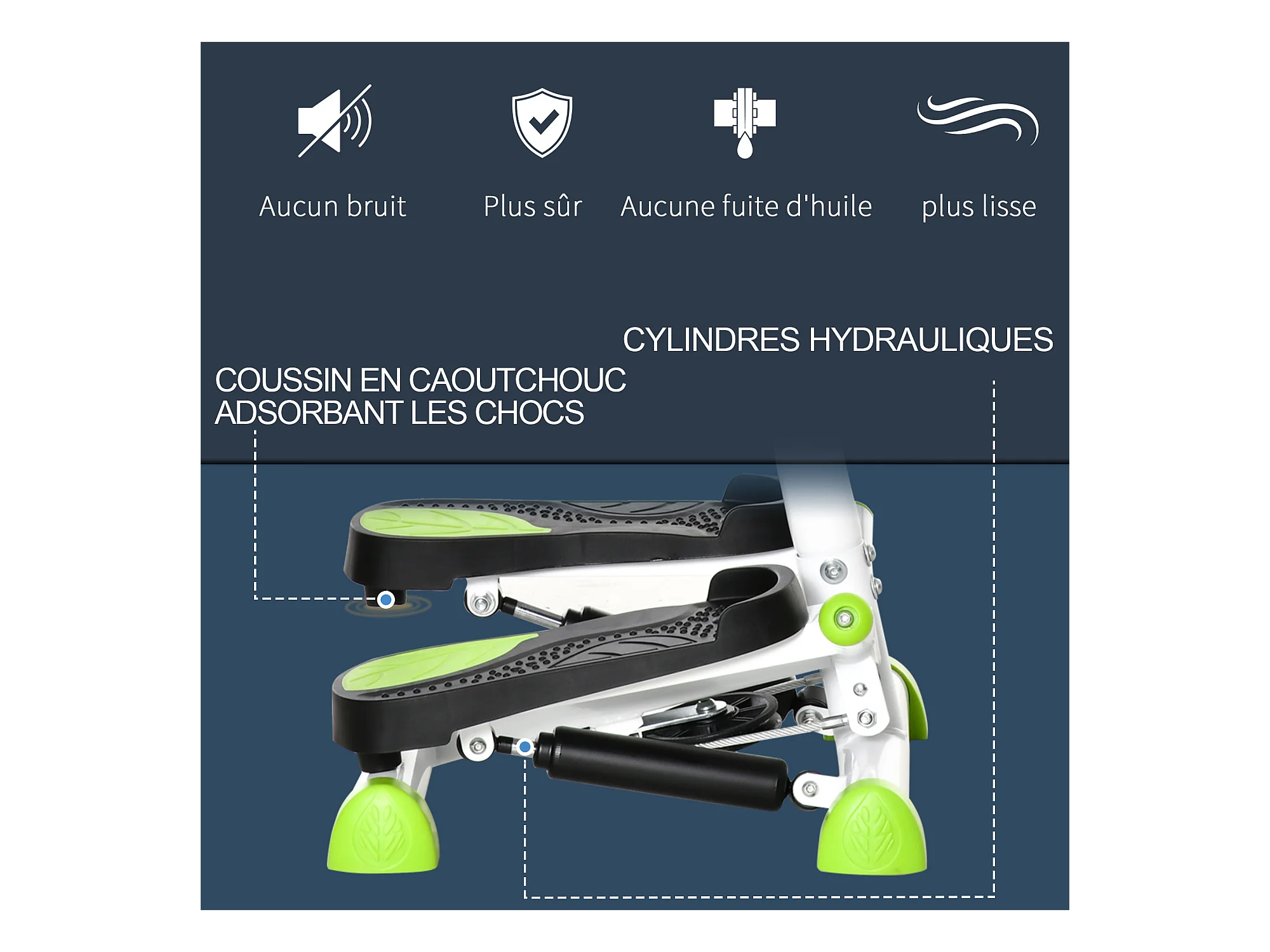 Stepper Fitness avec guidon ergonomique - écran LCD multifonction - résistance réglable - acier blanc vert noir