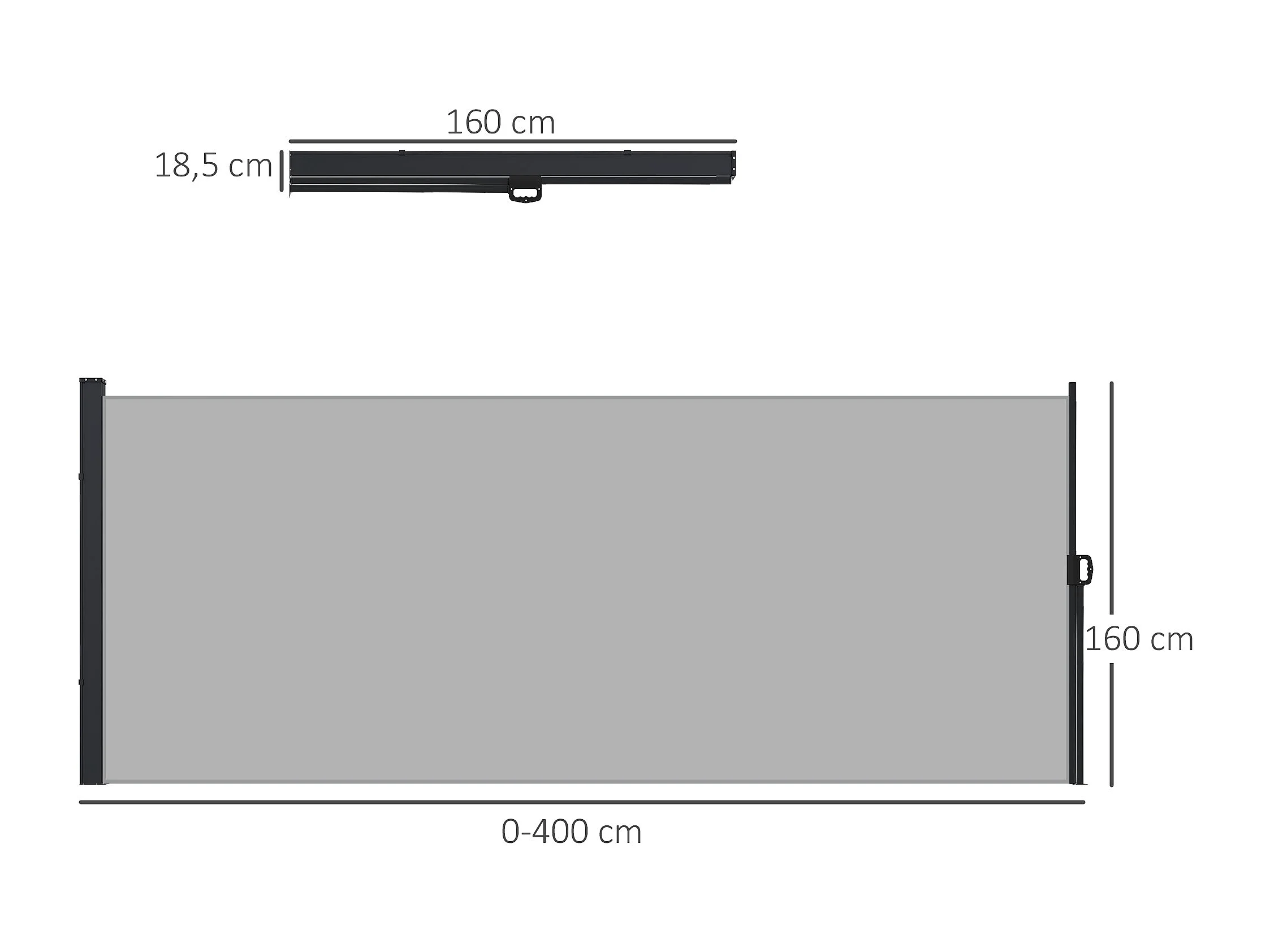 Store latéral brise-vue paravent rétractable de jardin dim. 4L x 1,60H m alu. polyester haute densité 180 g/m² gris