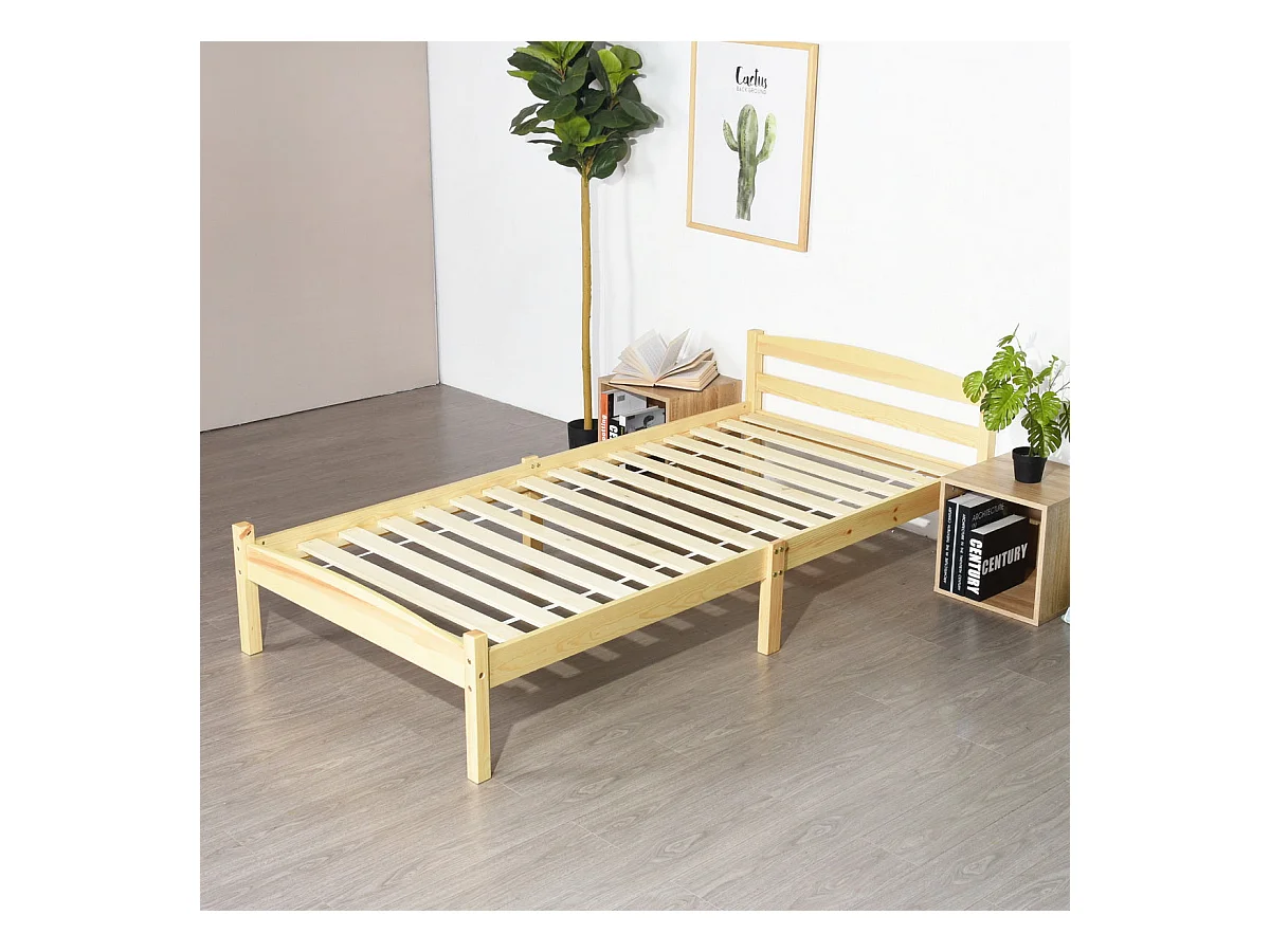 Structure de Lit Simple en Bois - 90x190 cm - Naturel