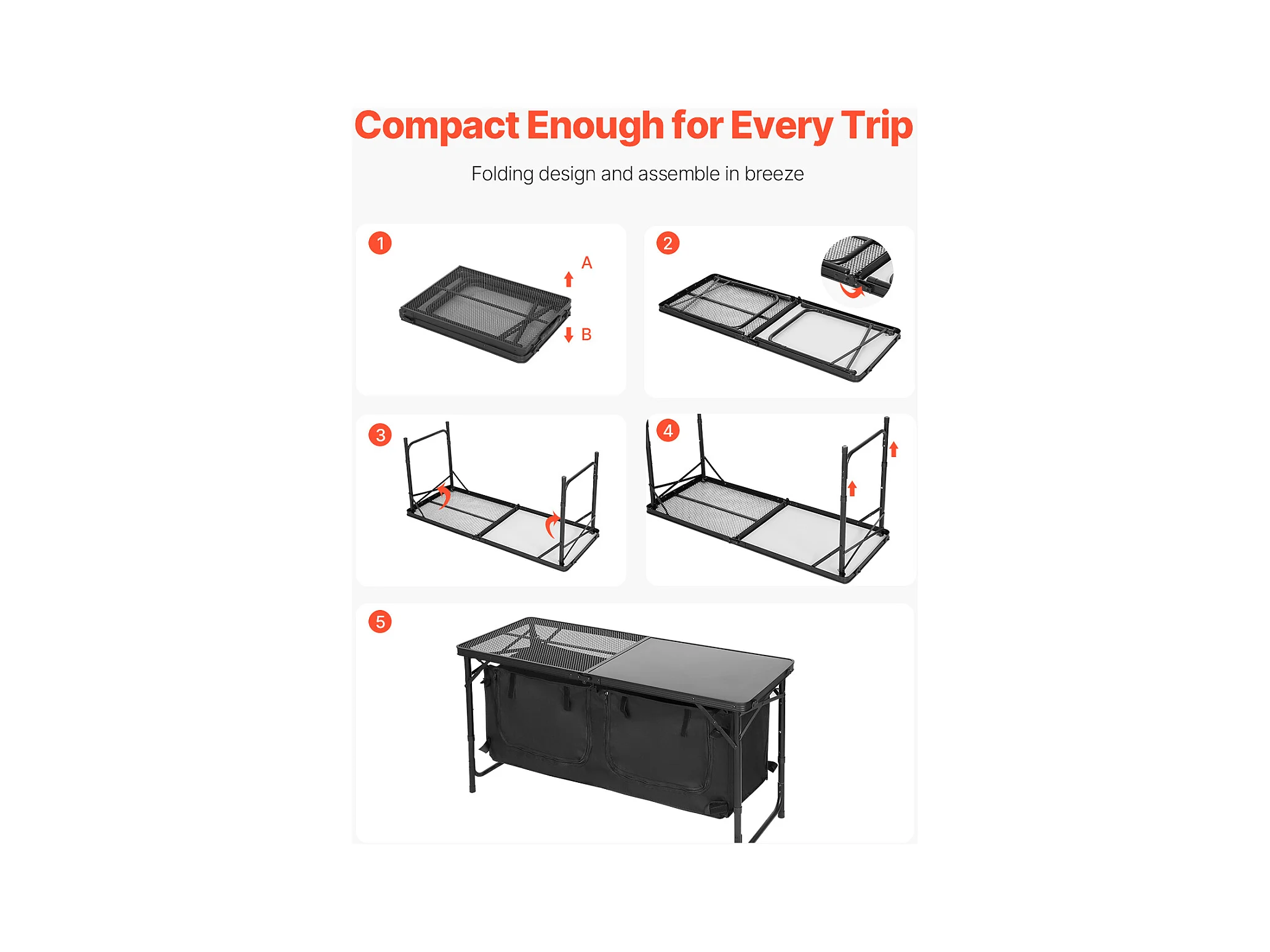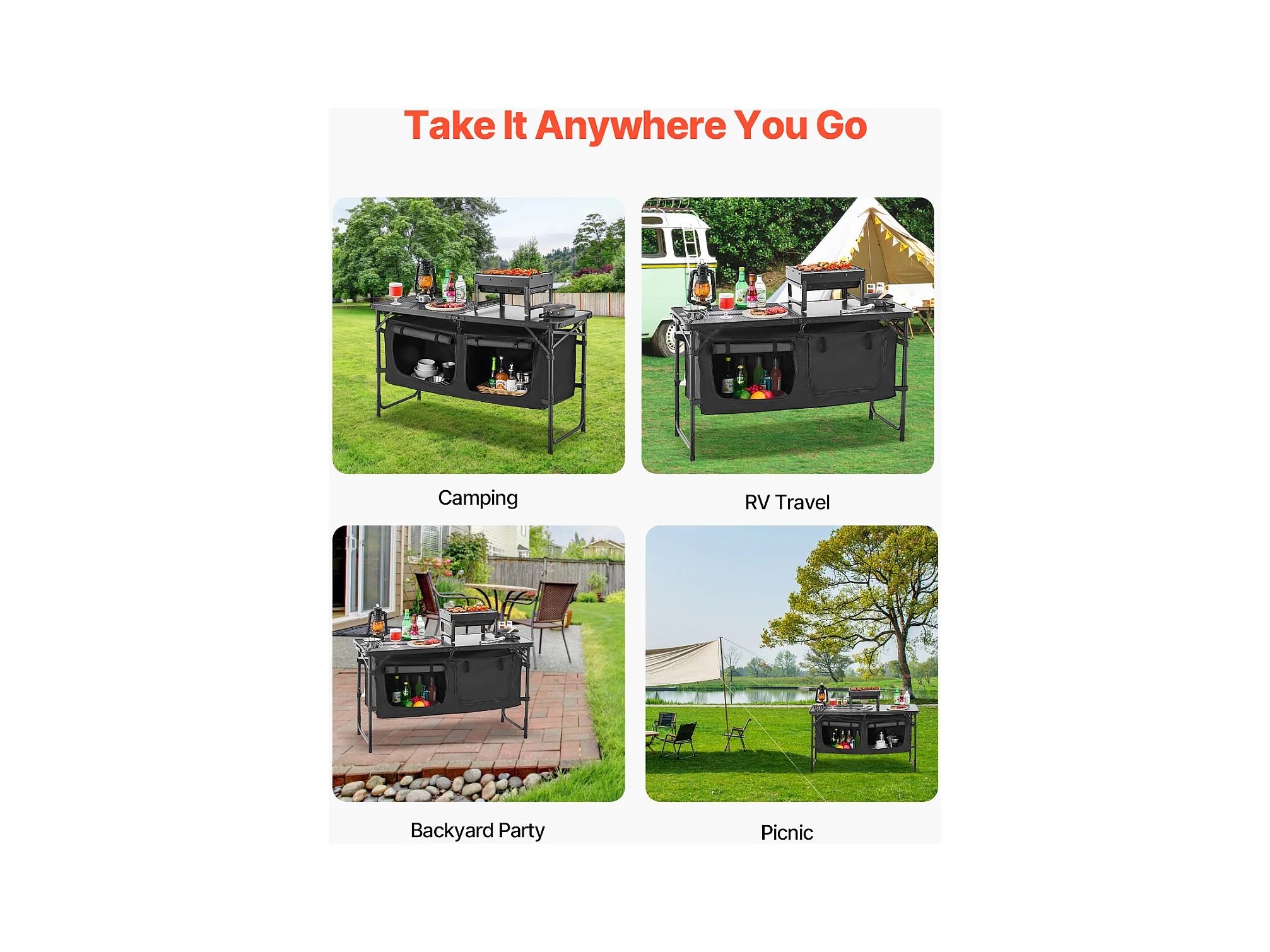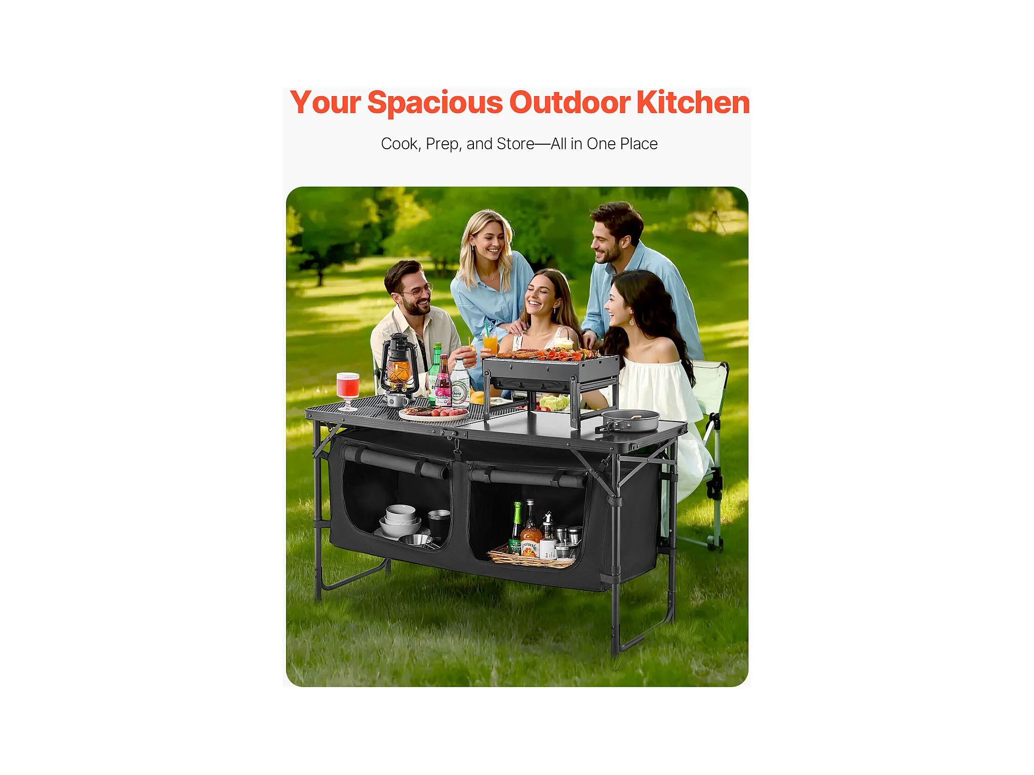 SucceBuy Table de Cuisine de Camping, Cuisine de Camping, Station de Cuisson Portable Pliable avec Rangement