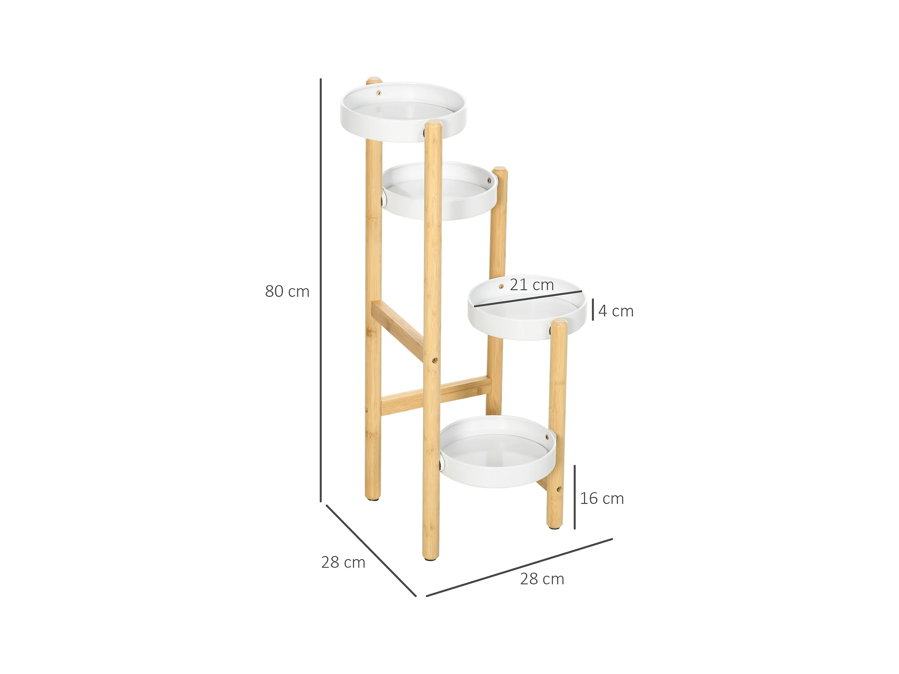Support à fleurs style scandinave 4 niveaux - porte plante 4 étagères - bois bambou verni métal blanc