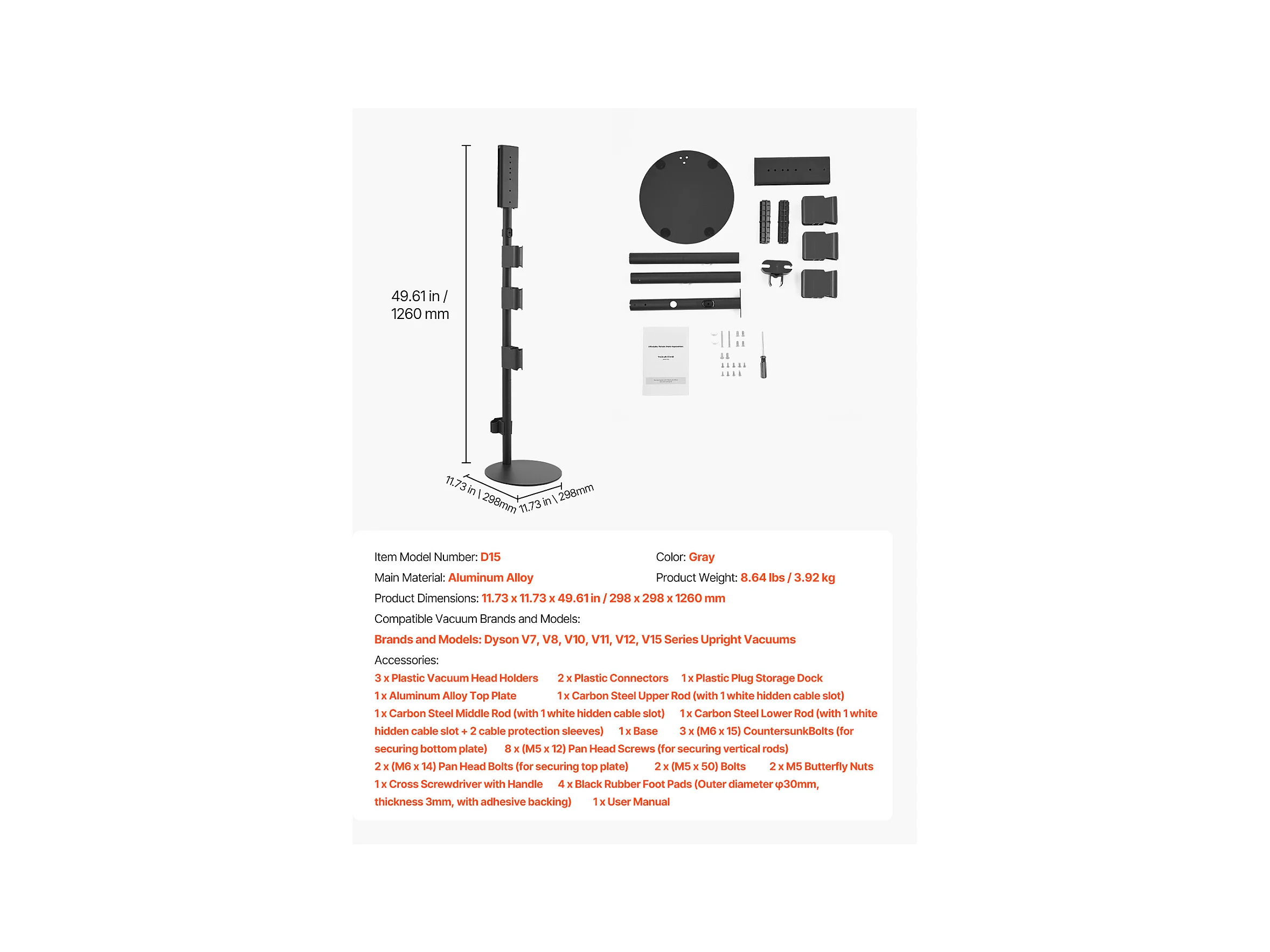 Support d'Aspirateur pour Dyson SucceBuy Compatible avec V7, V8, V10, V11, V12, V15, Porte-aspirateur Vertical avec Accessoires, 3 Clips de Rangement de Brosses