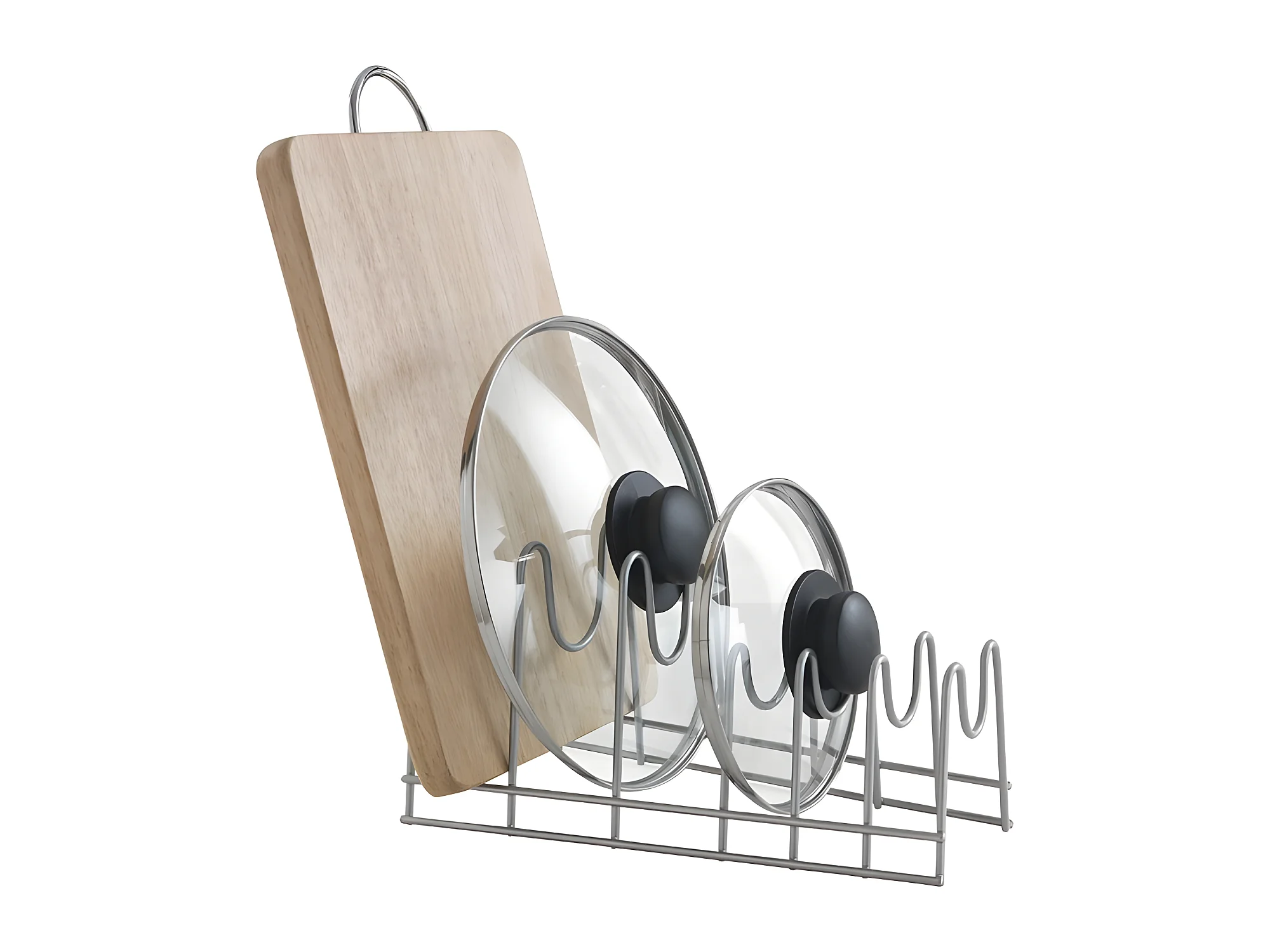 Support de Plateaux/Couvercles avec Poignée 6 Compartiments LIDO de Metaltex. Finition Polytherm® Couleur Gris