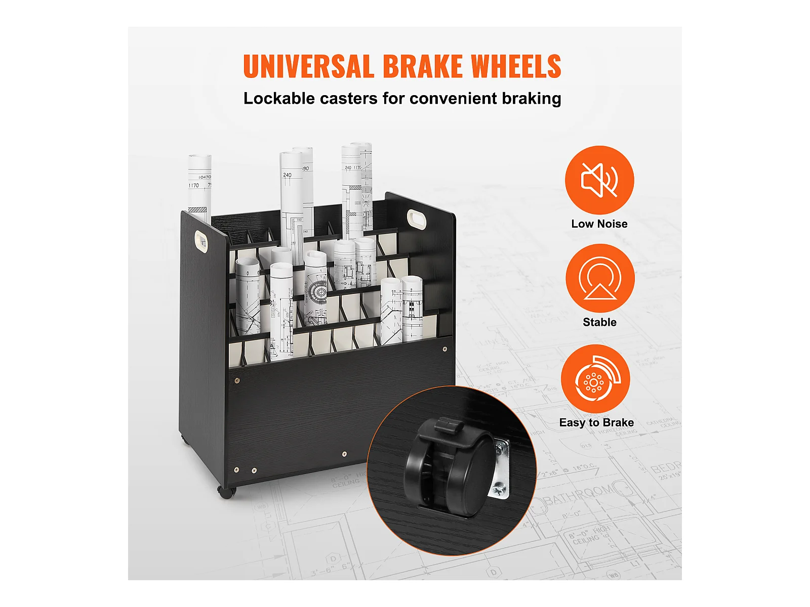 Support de Rangement Mobile en Bois pour Plans SucceBuy, 50 Emplacements, Stockage Organisé des Documents