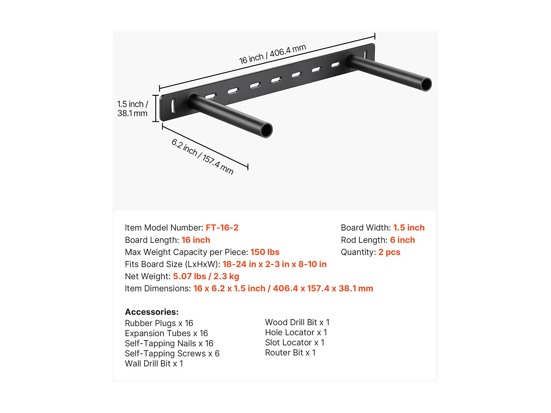 Support d'Étagère SucceBuy Flottante Robuste, 40.64x15.74x3.81 cm, Lot de 2, Capacité de Charge 68 kg, avec Accessoires, Fixation Murale Dissimulée