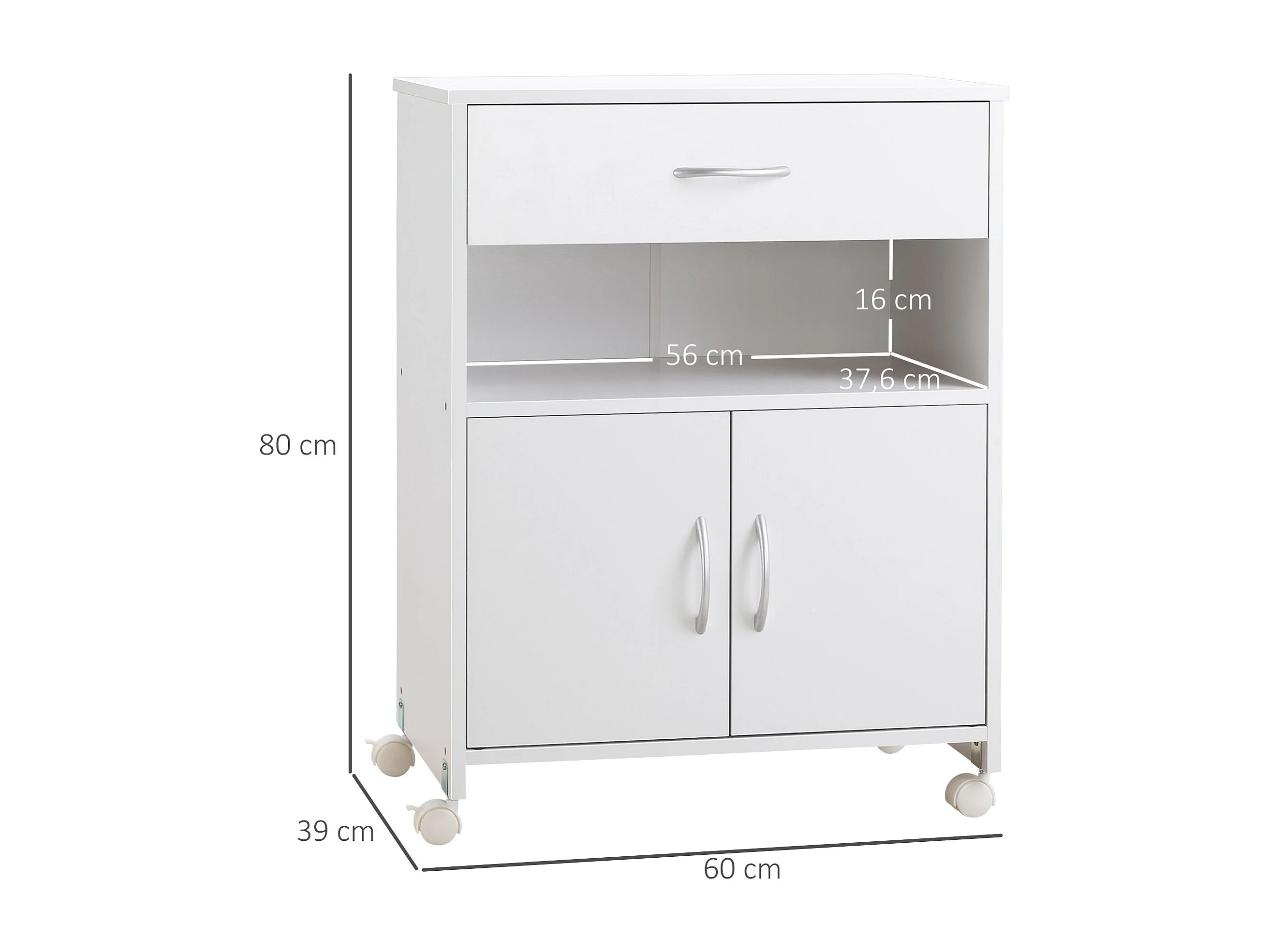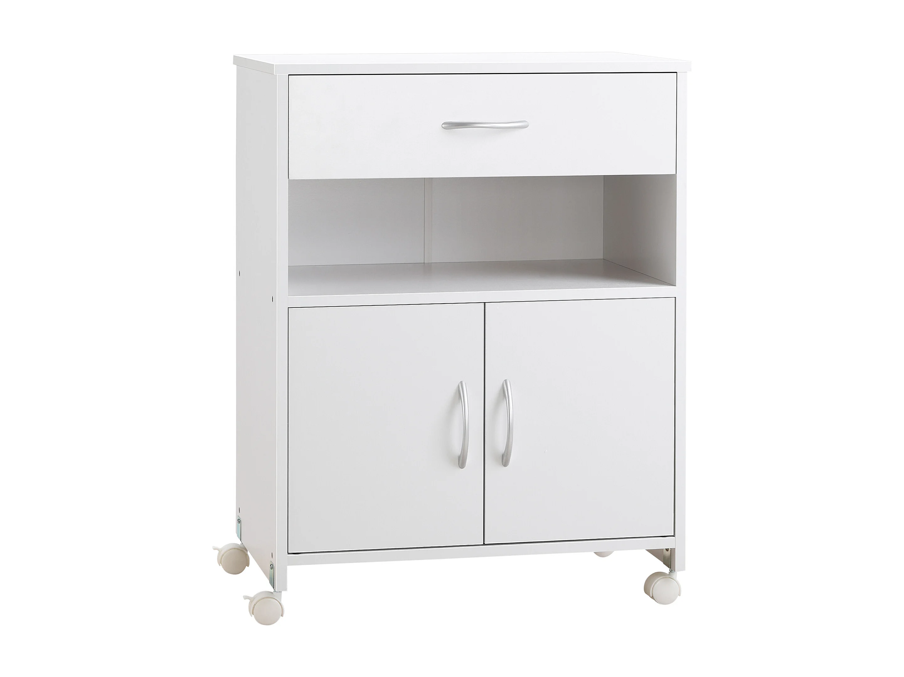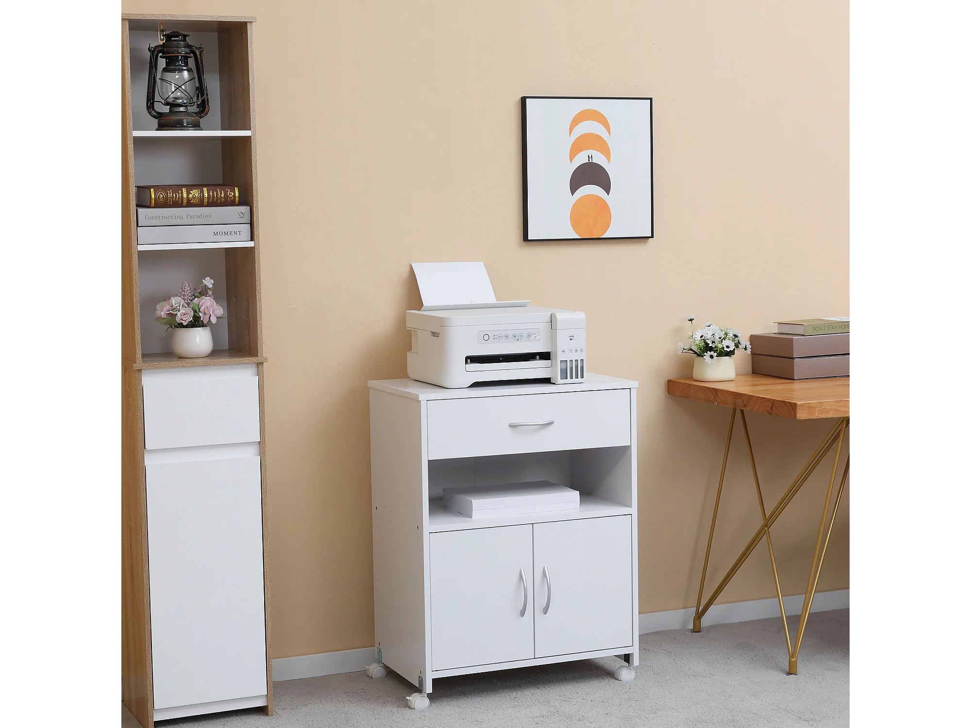 Support d'imprimante - rangement imprimante sur roulettes - tiroir, niche, 2 portes, étagère - blanc