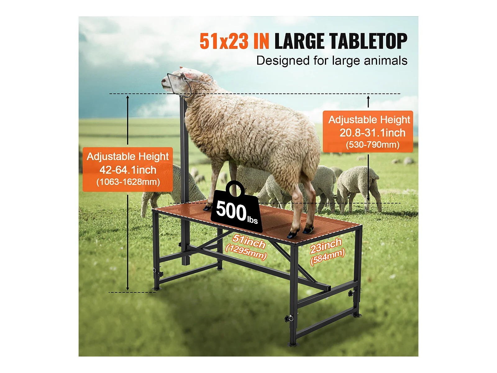 Support l'Élagage des Chèvres SucceBuy, Hauteur 53,3 - 83,8 cm, 129,5 x 58,4 cm, Plateau de Table Noir