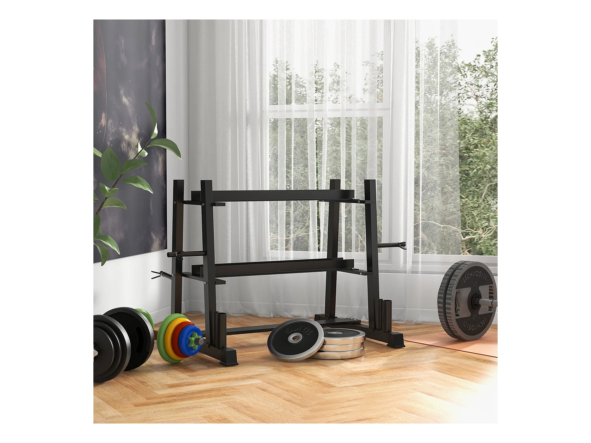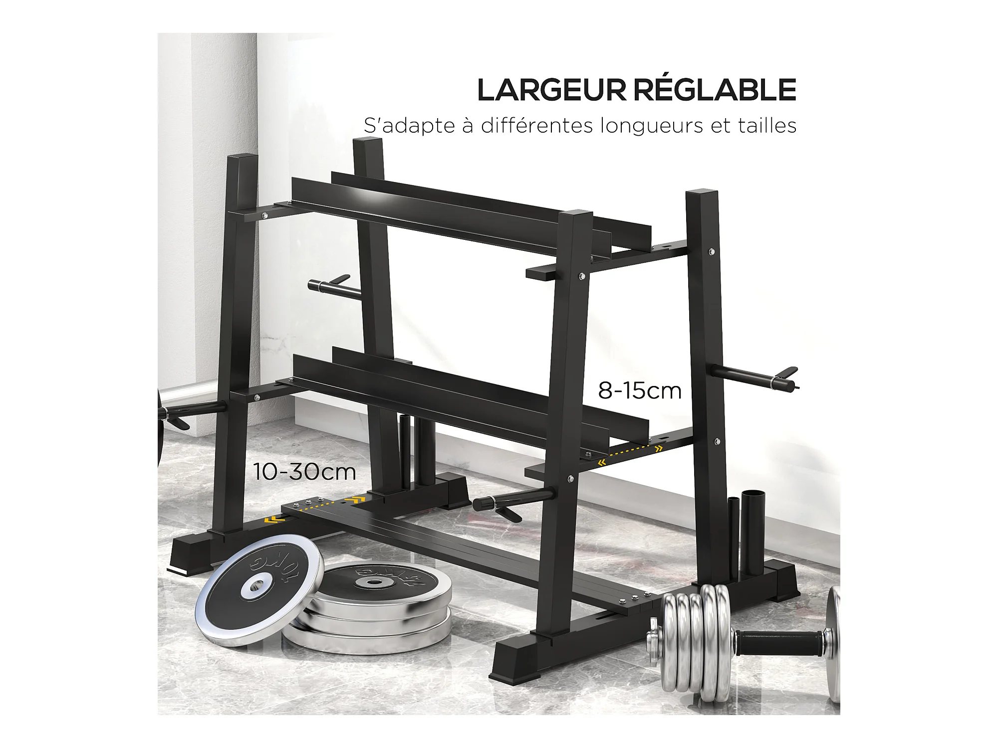Support pour poids, haltères et barres - rack haltères multifonction - charge max. 200 Kg - acier noir