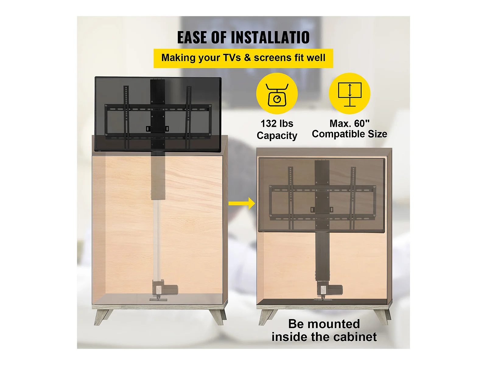 Support TV Mural Extensible, SucceBuy Support Élévateur Motorisé pour Téléviseurs Plasma LCD/LED/OLED 66-152.4 CM, Électrique, Noir