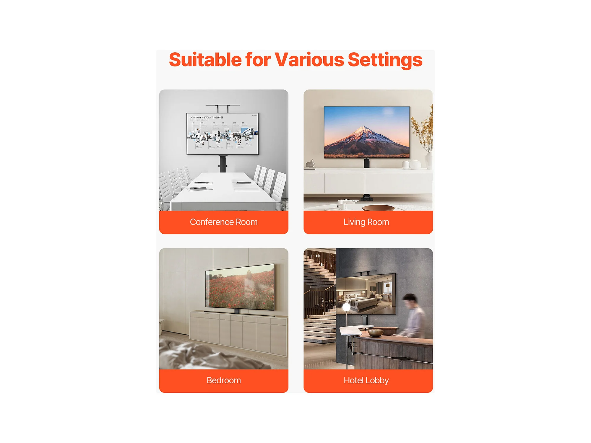 Support TV Murale SucceBuy Support TV Motorisé avec Télécommande, Support TV Électrique Réglable pour Téléviseurs, Capacité de 60 kg