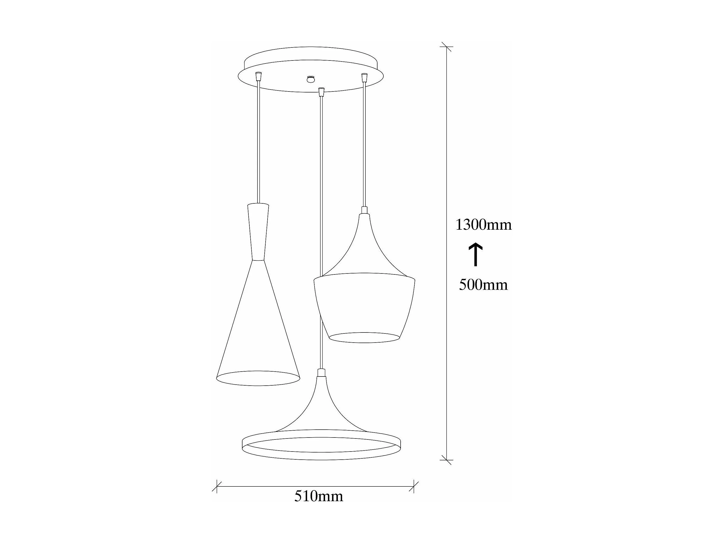 Suspension 3 lampes escalier Klipsch D51cm Métal Noir et Rouge