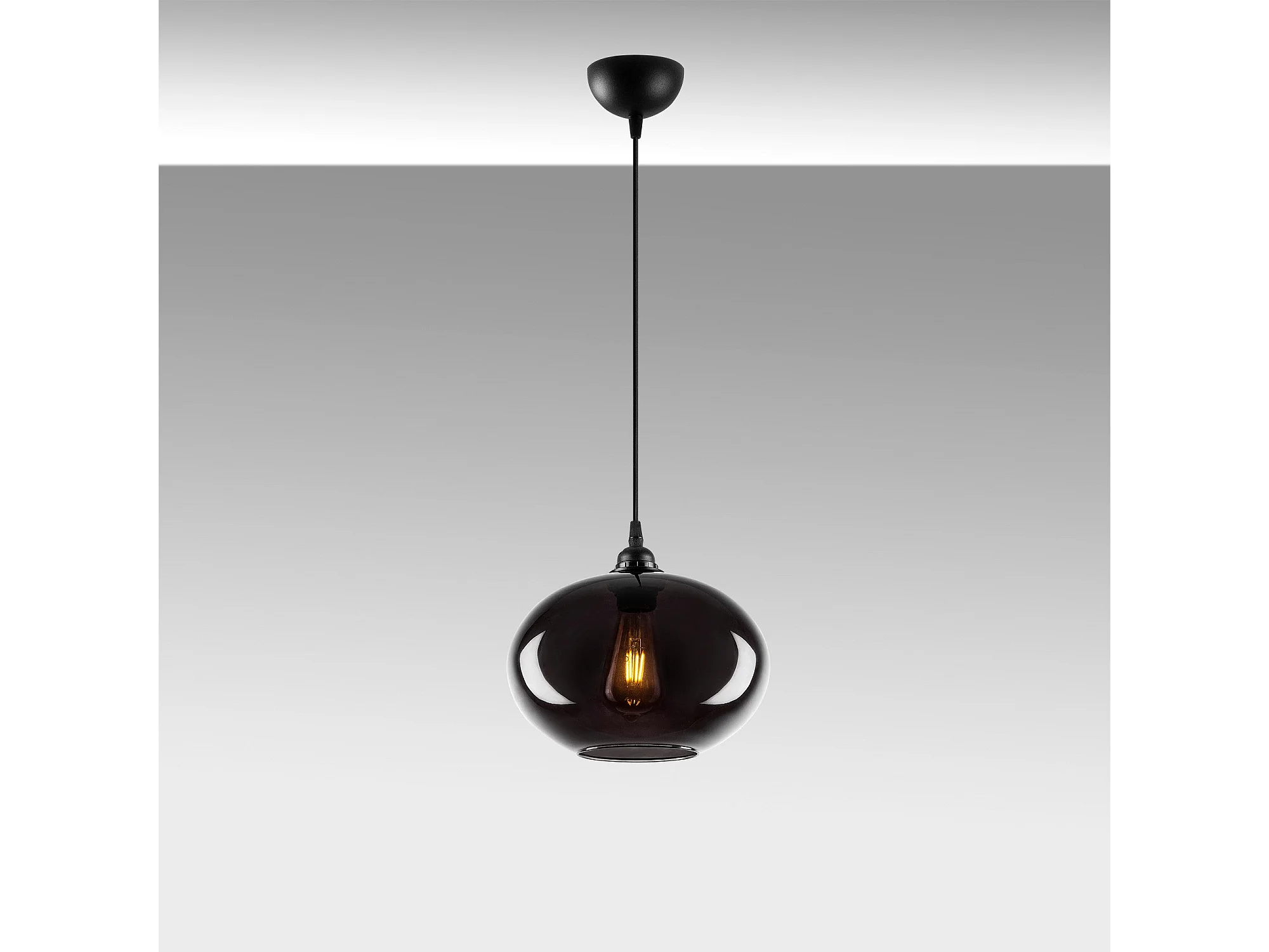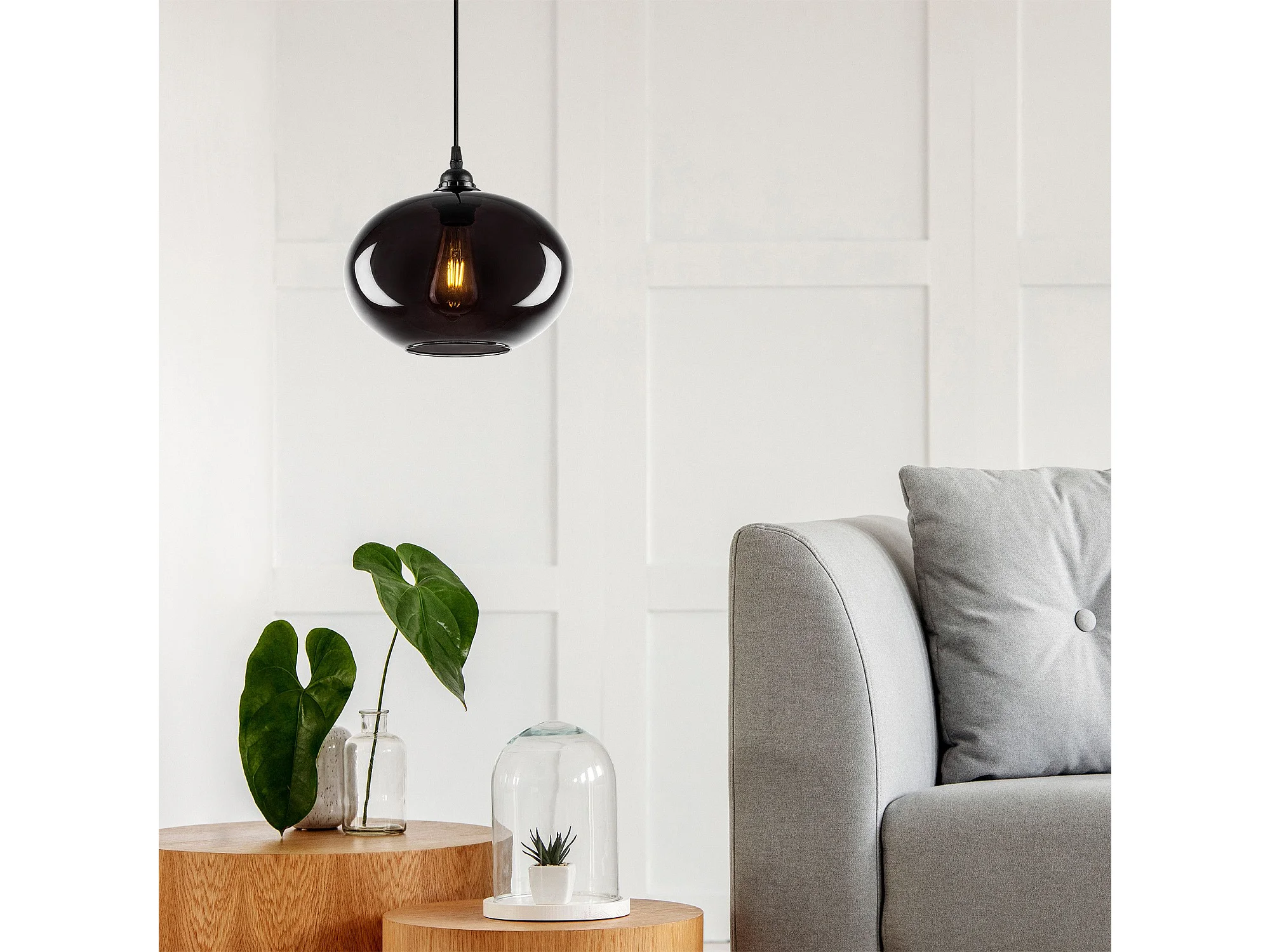 Suspension 1 lampe Mervin D12cm Métal Noir et Verre Fumé