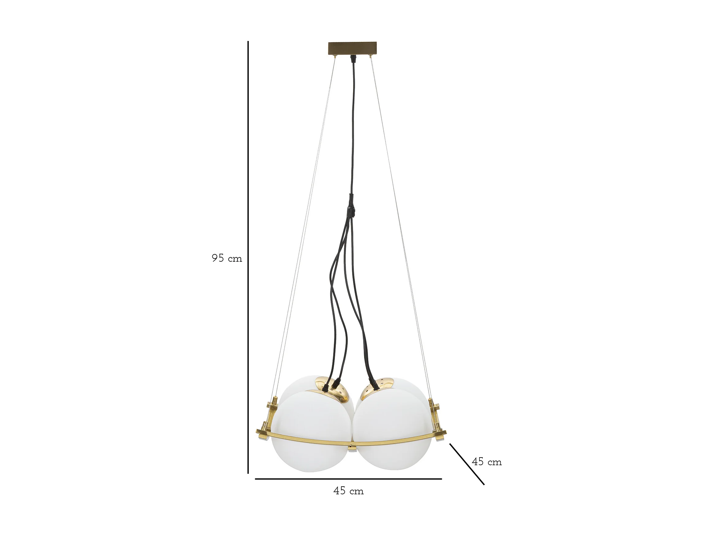 Lampe Suspension en Verre "Japan" 45cm Blanc & Or