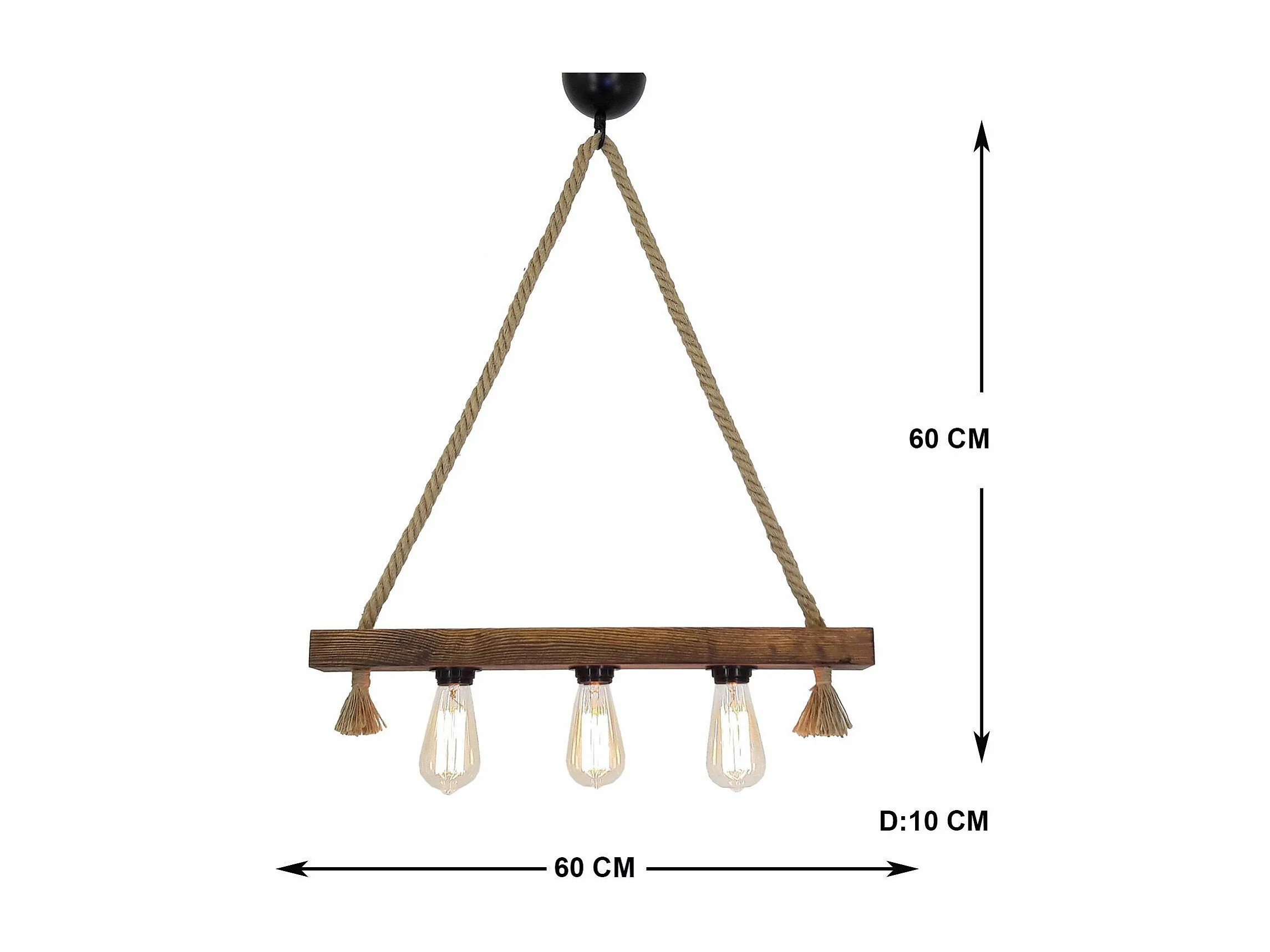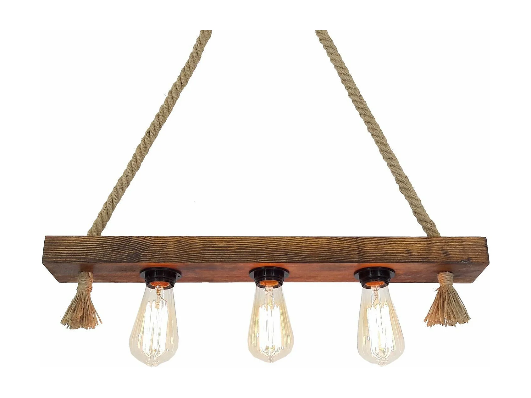 Suspension style rustique 3 lampes alignées Tarane L60cm Pin massif foncé