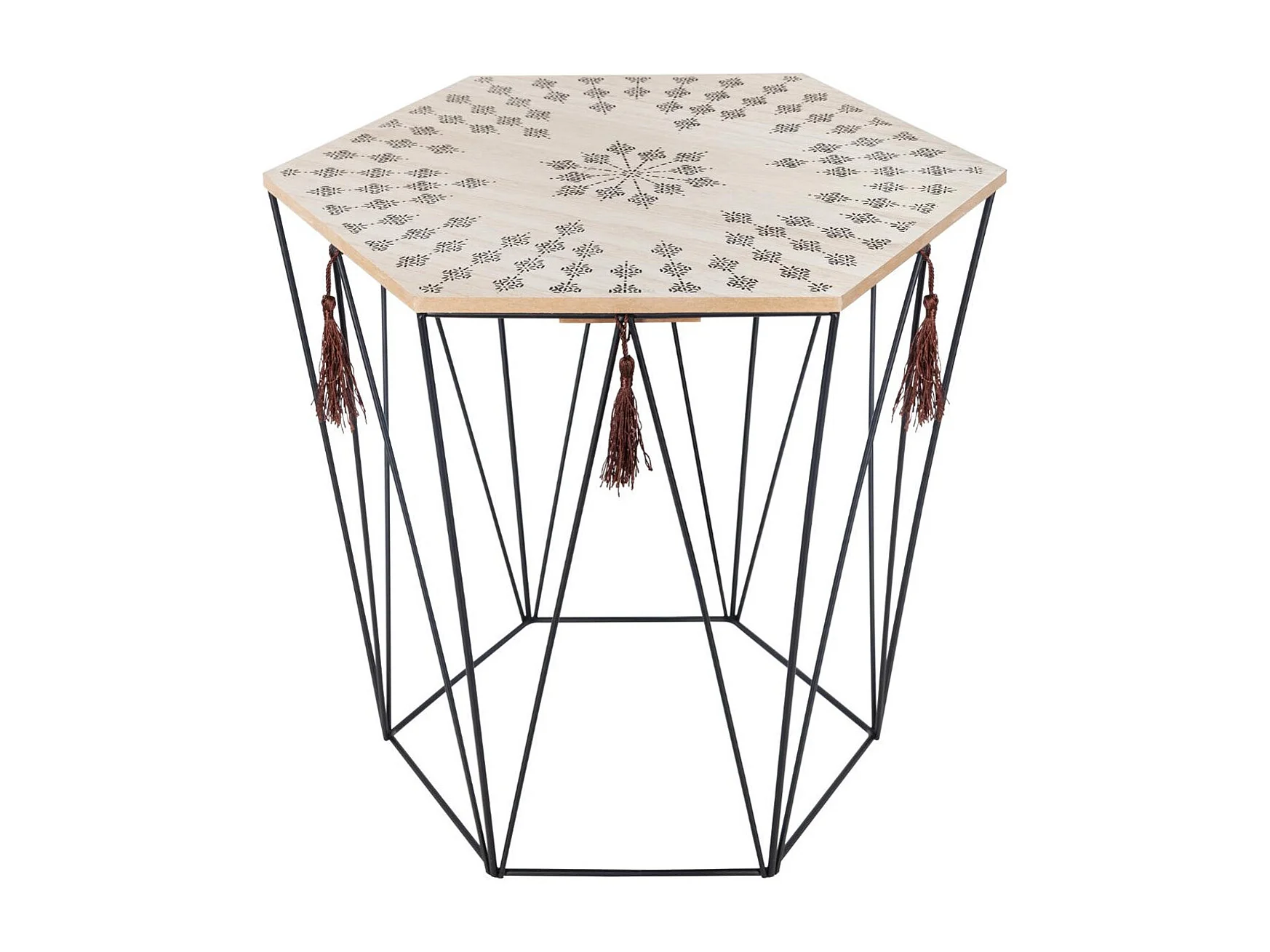 Table à café en métal noir et plateau en Bois déco ethnique H 40 cm