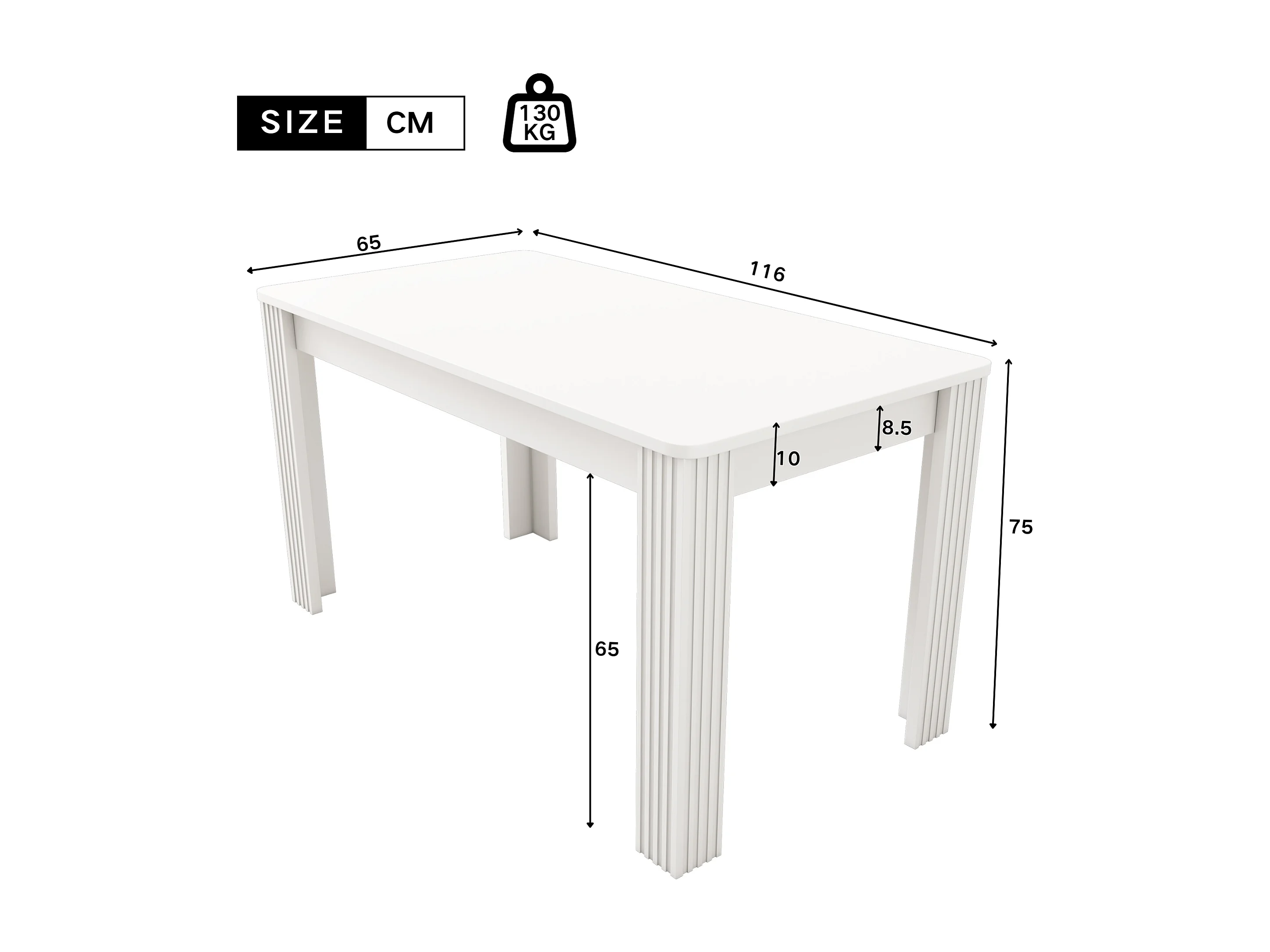 Table à manger 116x65x75 cm pour 4-6 personnes - pieds en bois - blanc