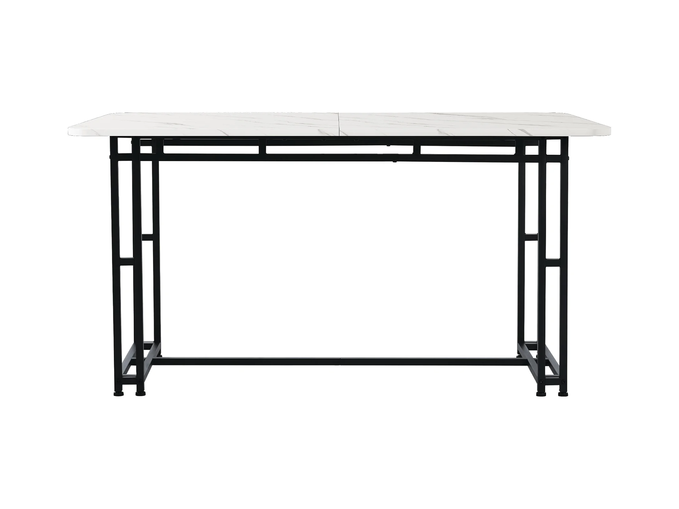 Table à manger 4 personnes 120x70cm en MDF,plateau en placage marbre blanc, pied en métal noir