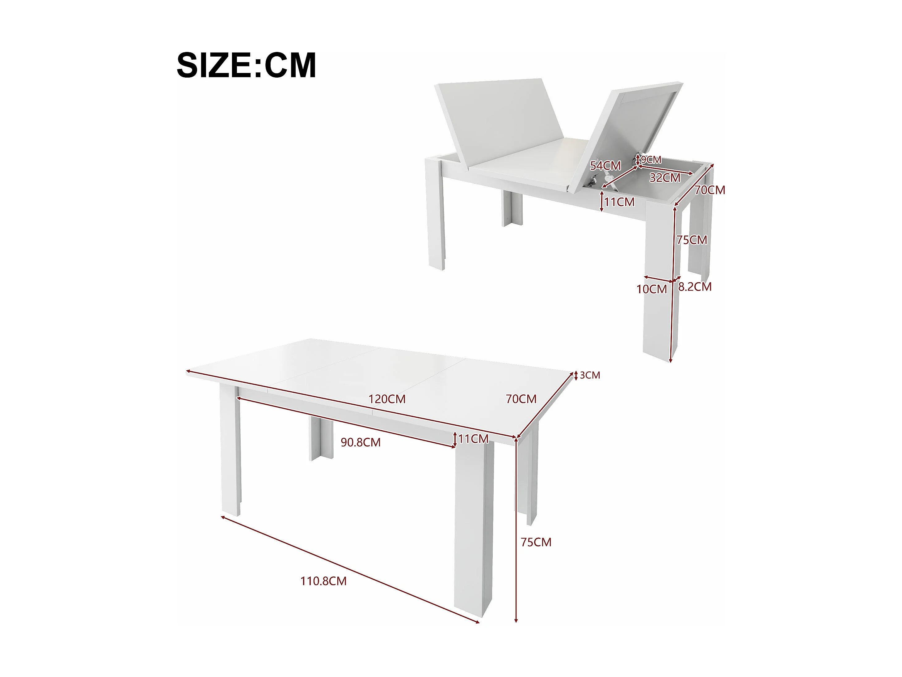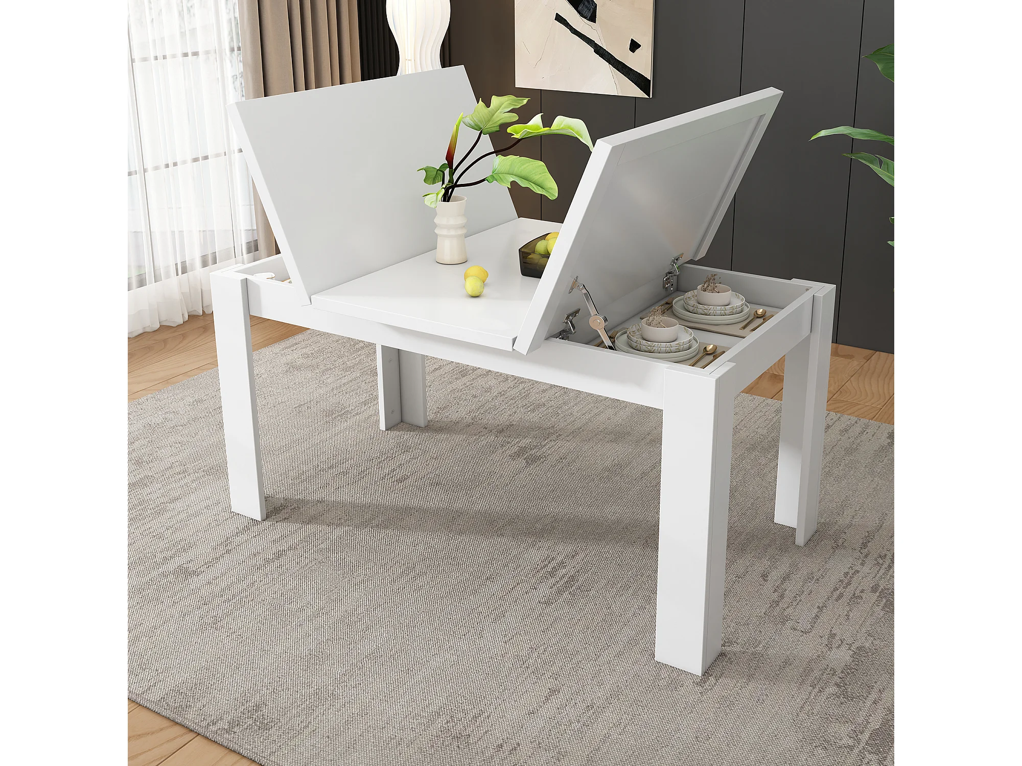Table à manger 6 personnes 120x70cm en MDF avec rangement caché, blanc