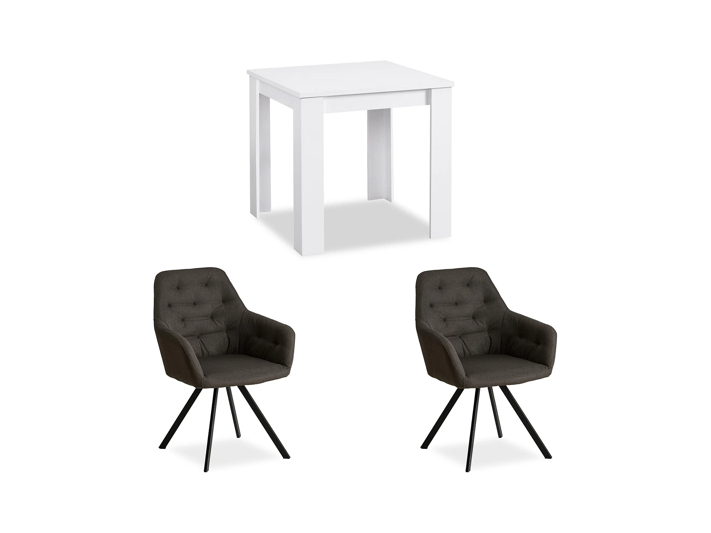 Table à manger 80x80x75 cm blanche avec 2 chaises anthracite