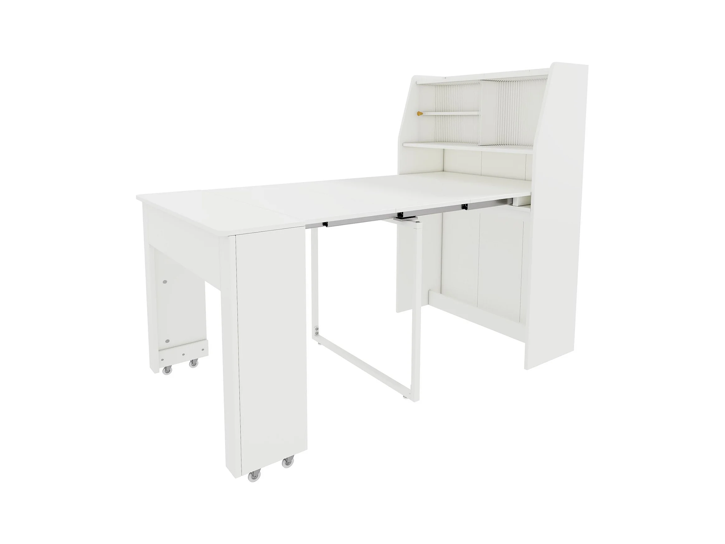 Table à manger blanche extensible 2 à 3 personnes avec rangement, réglable en 4 longueurs, 52/132,5x80x73cm