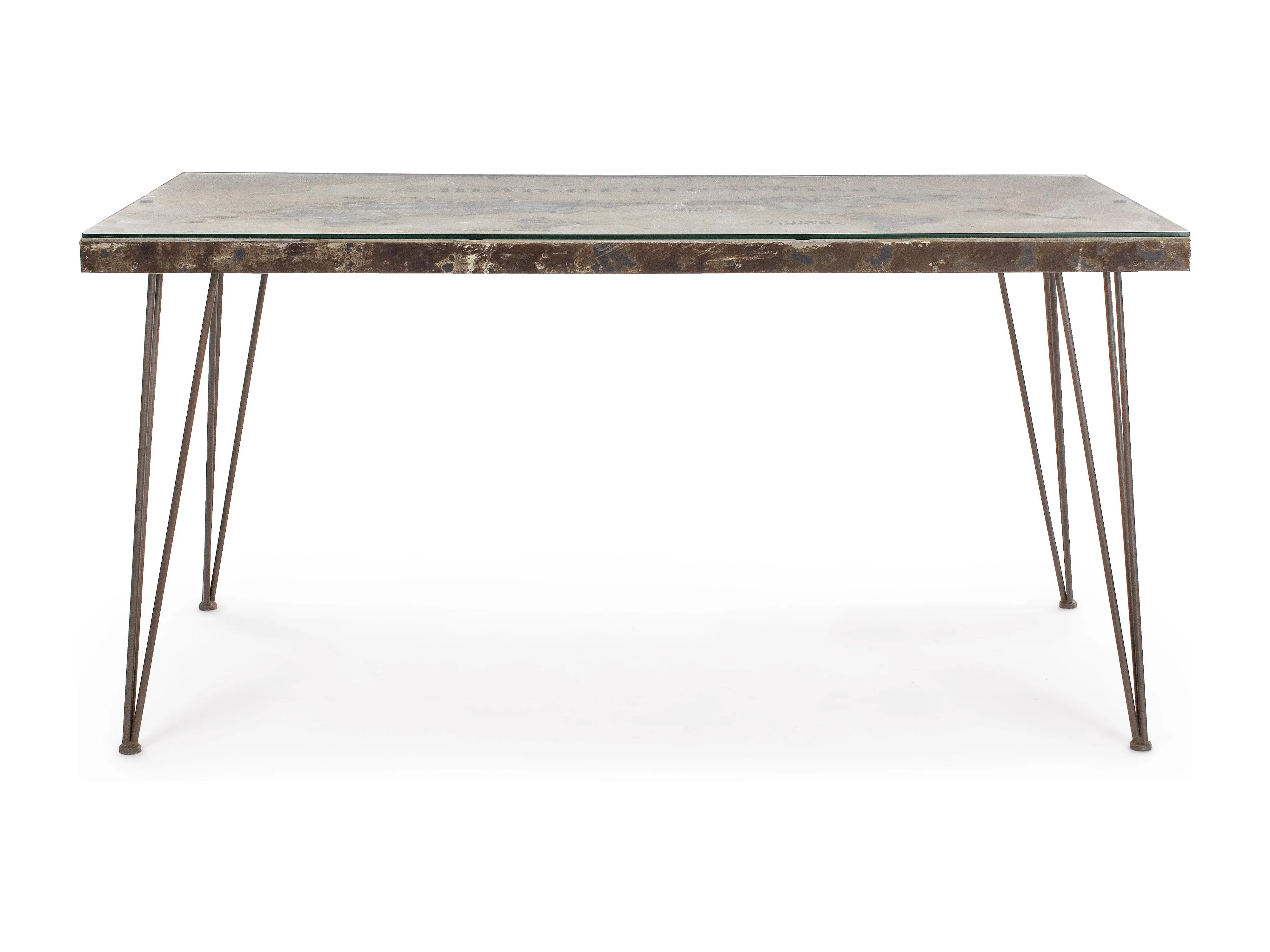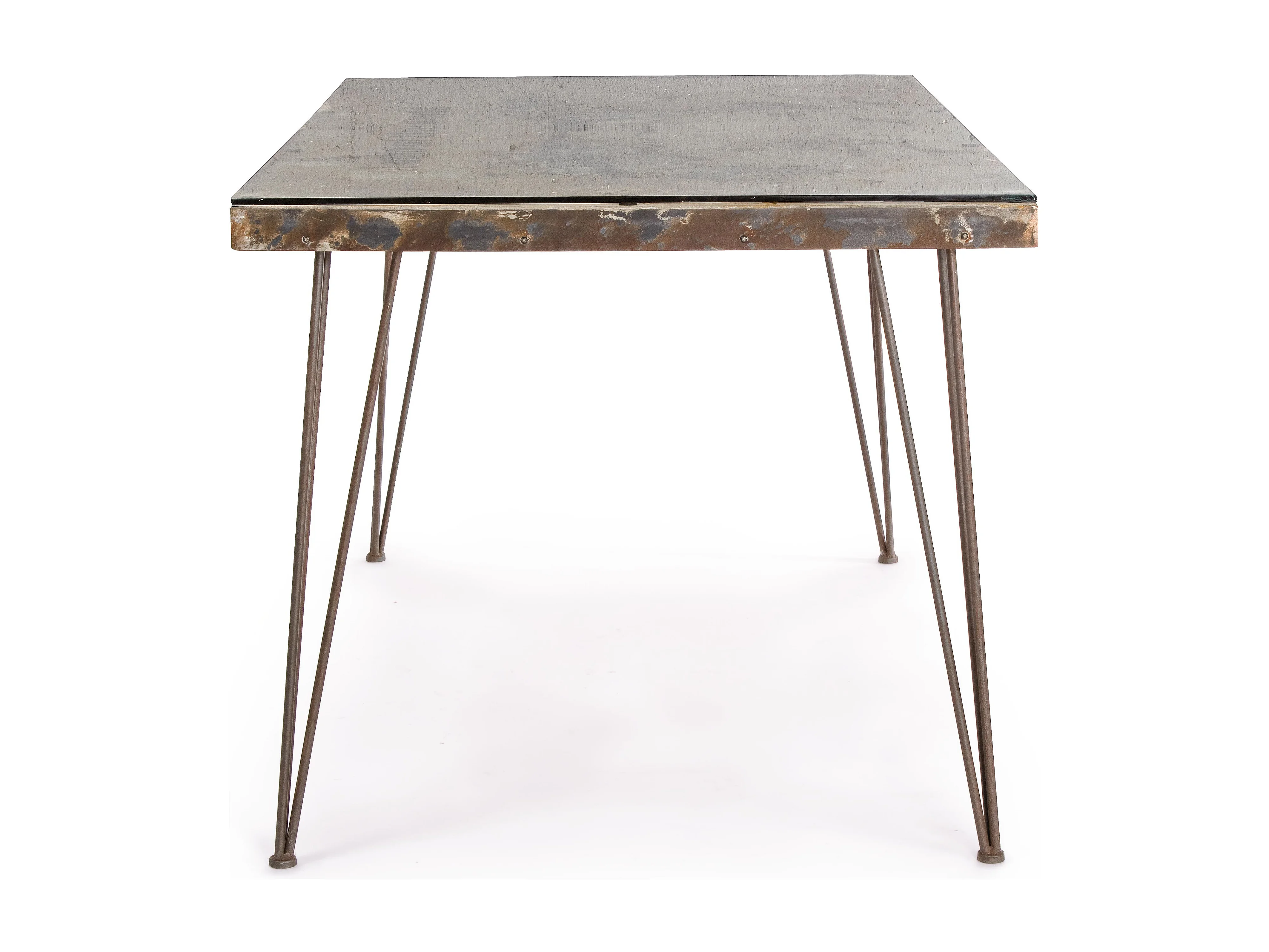 Table à manger rectangulaire verre trempé et acier effet naturel Agno 160cm