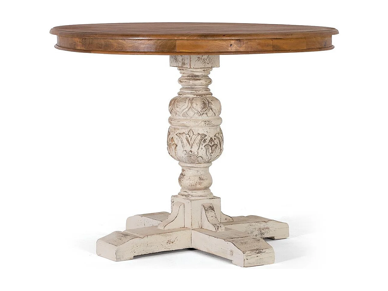 Table à manger en manguier naturel et blanc vieilli 1 mètre
