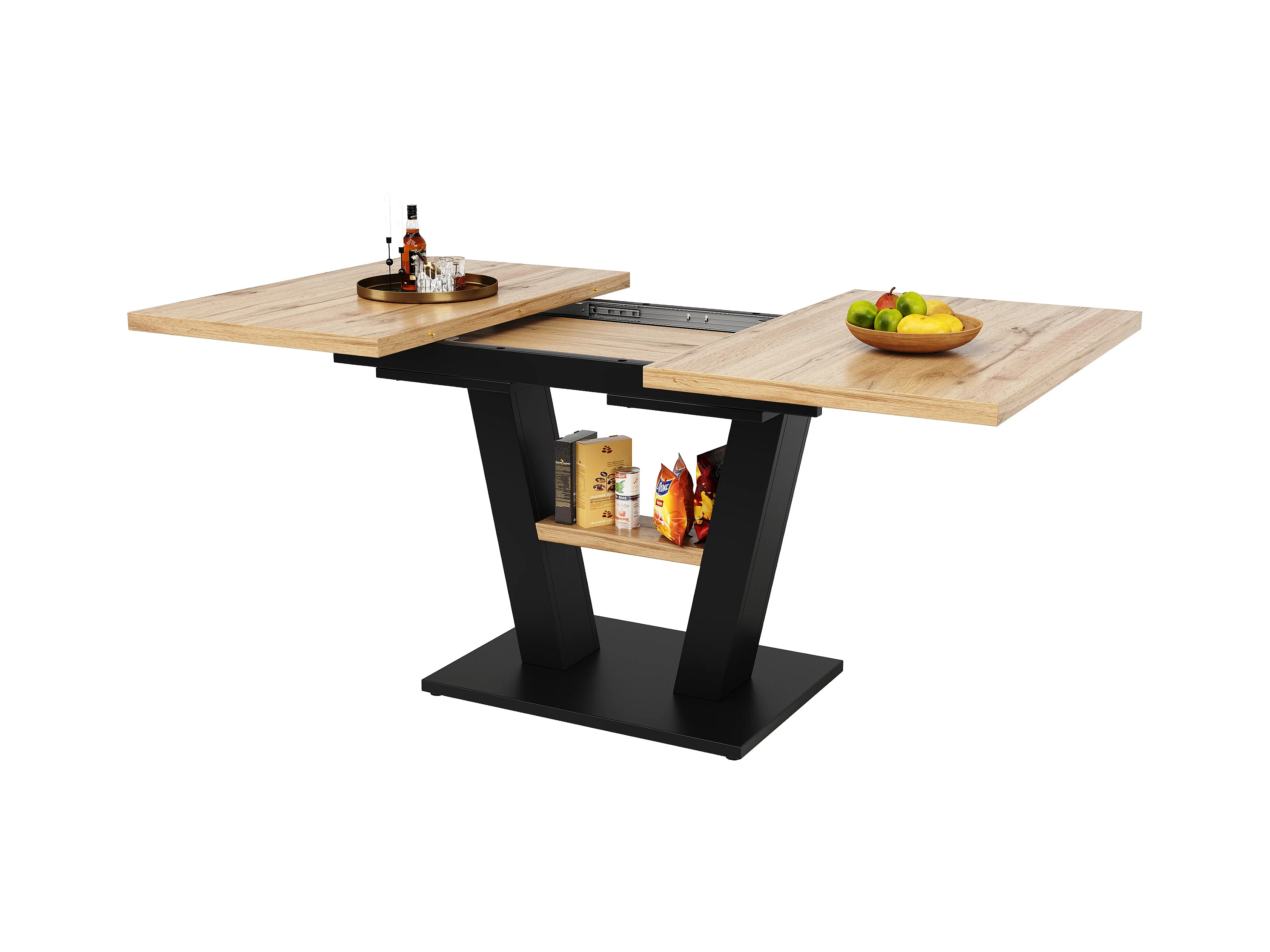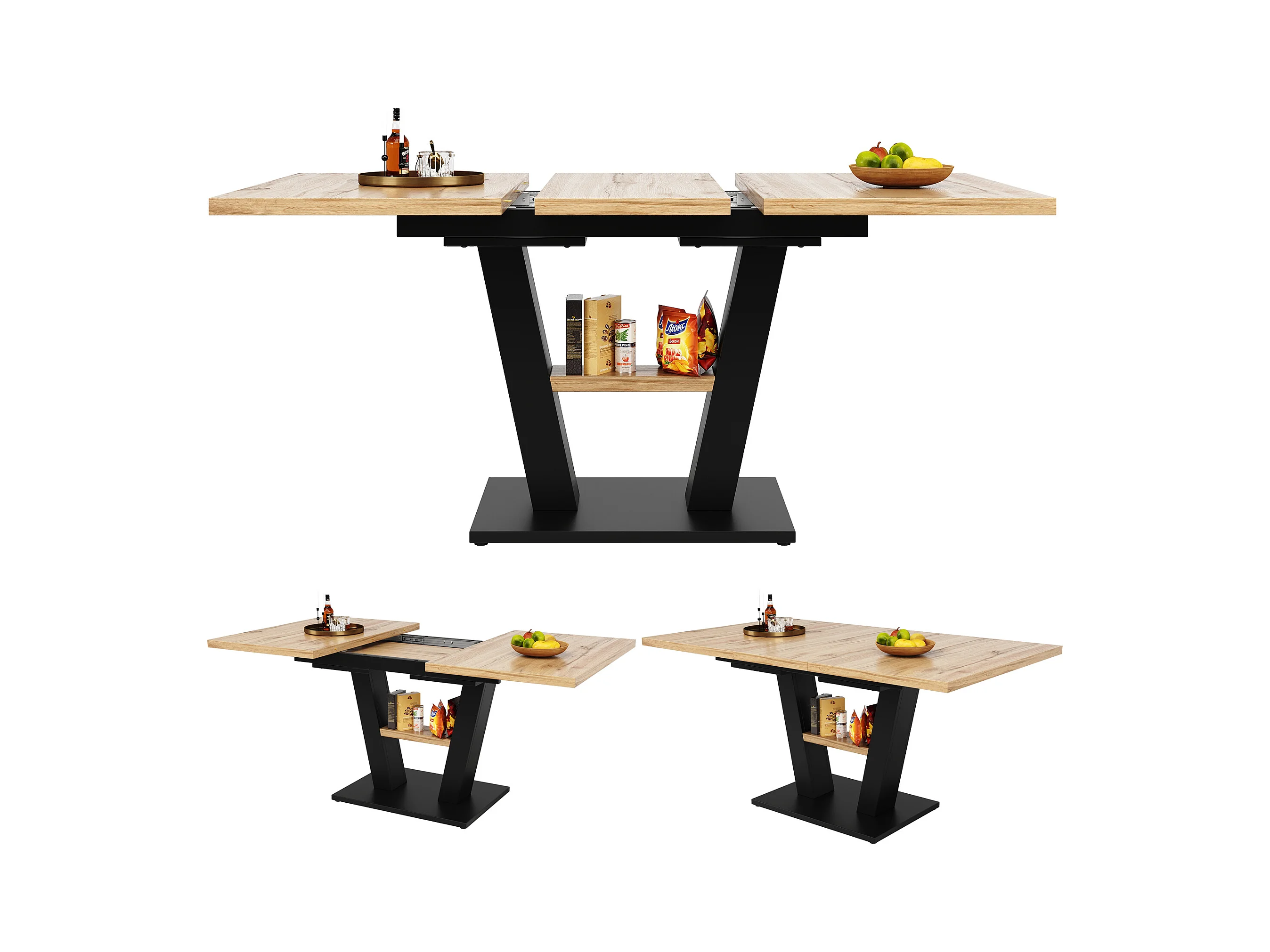 Table à manger extensible 4 à 6 couverts - 118/157 x 70 x 75 cm - Plateau extensible - MDF + Pieds en métal - Naturel + noir