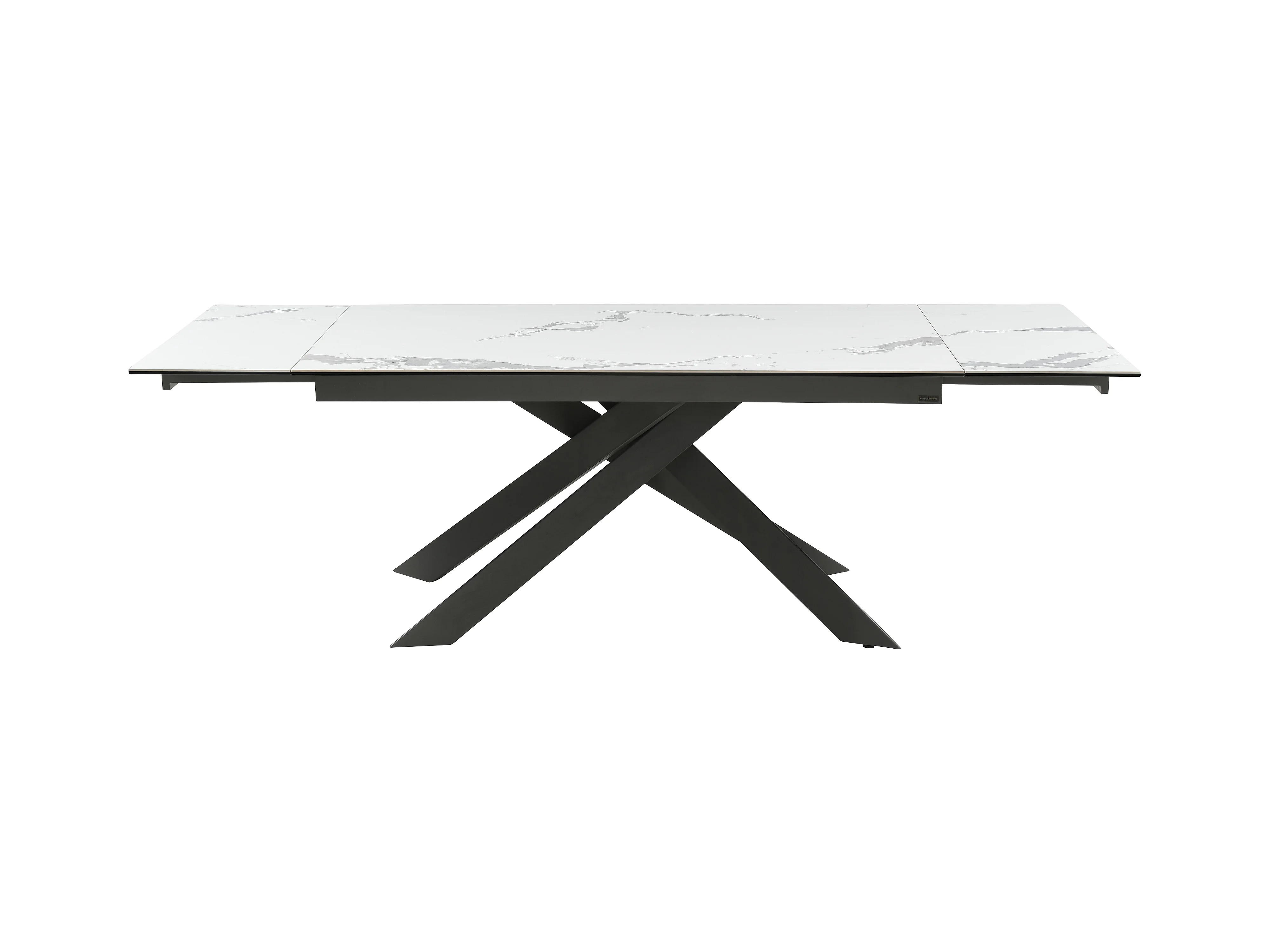 Table à manger extensible 6 à 10 personnes en céramique, verre trempé et métal - Effet marbre blanc et anthracite - COREMA de Maison Céphy