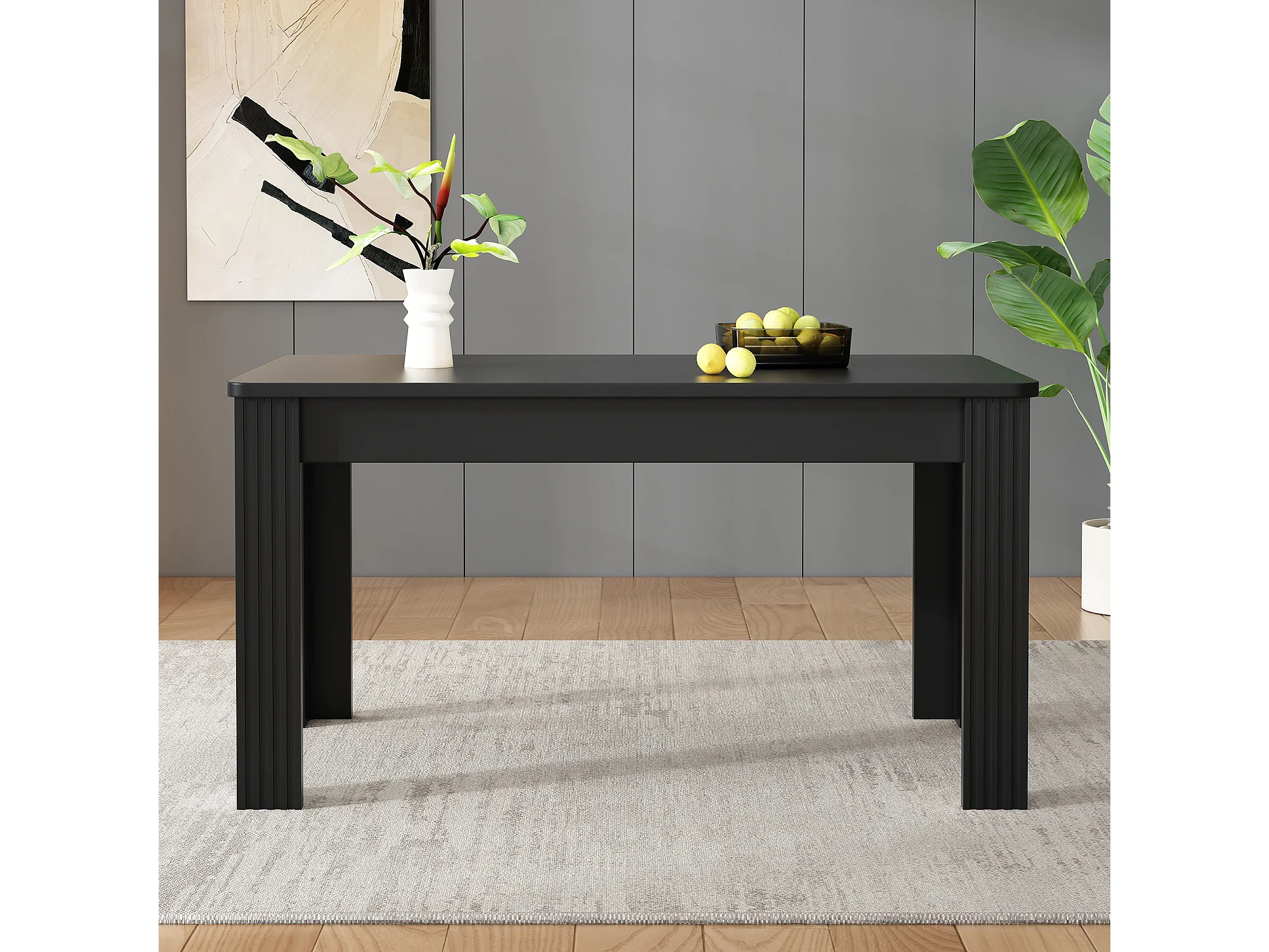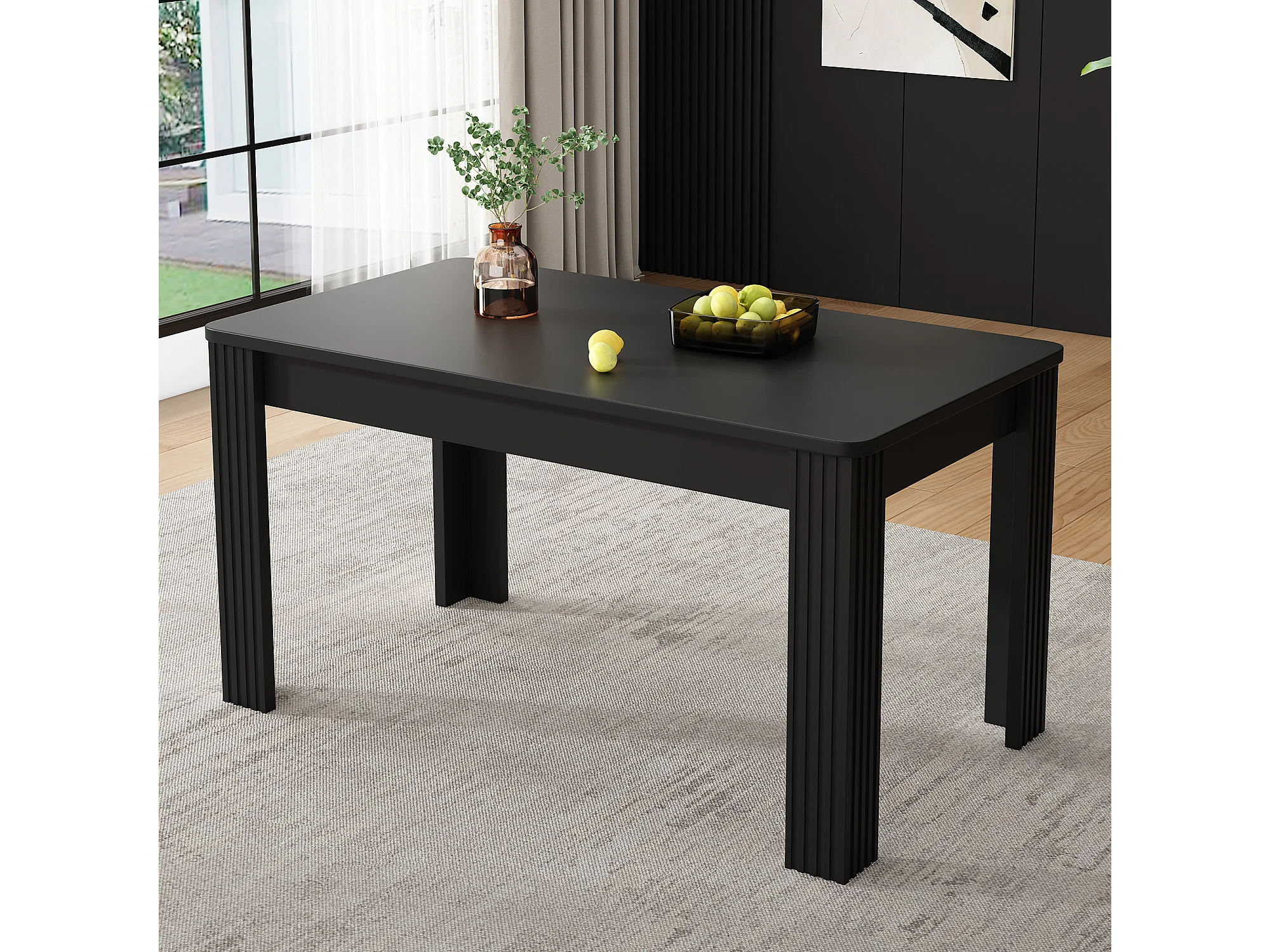 Table à manger rectangulaire, noire, 4 pieds - pour salles à manger et salons