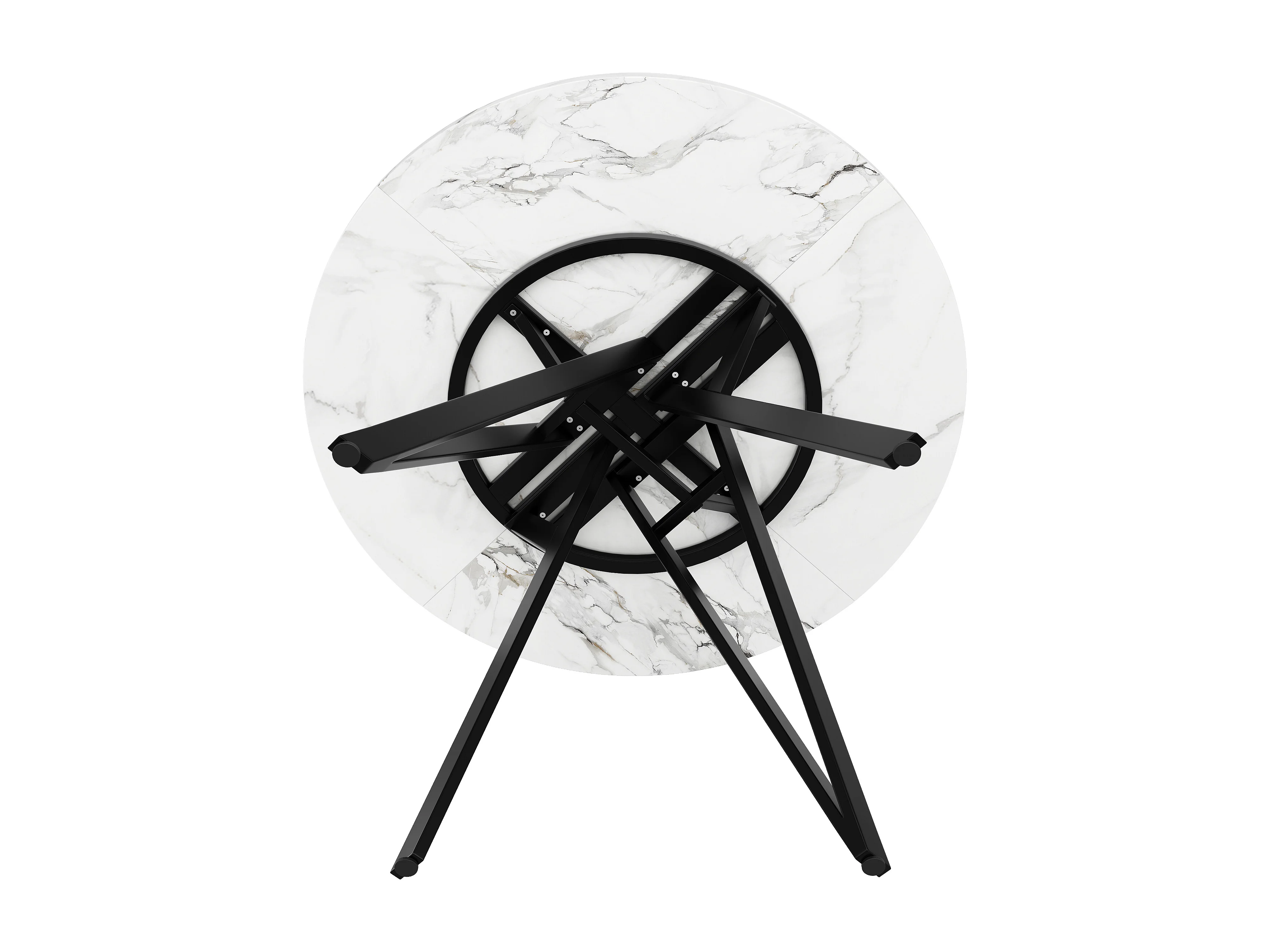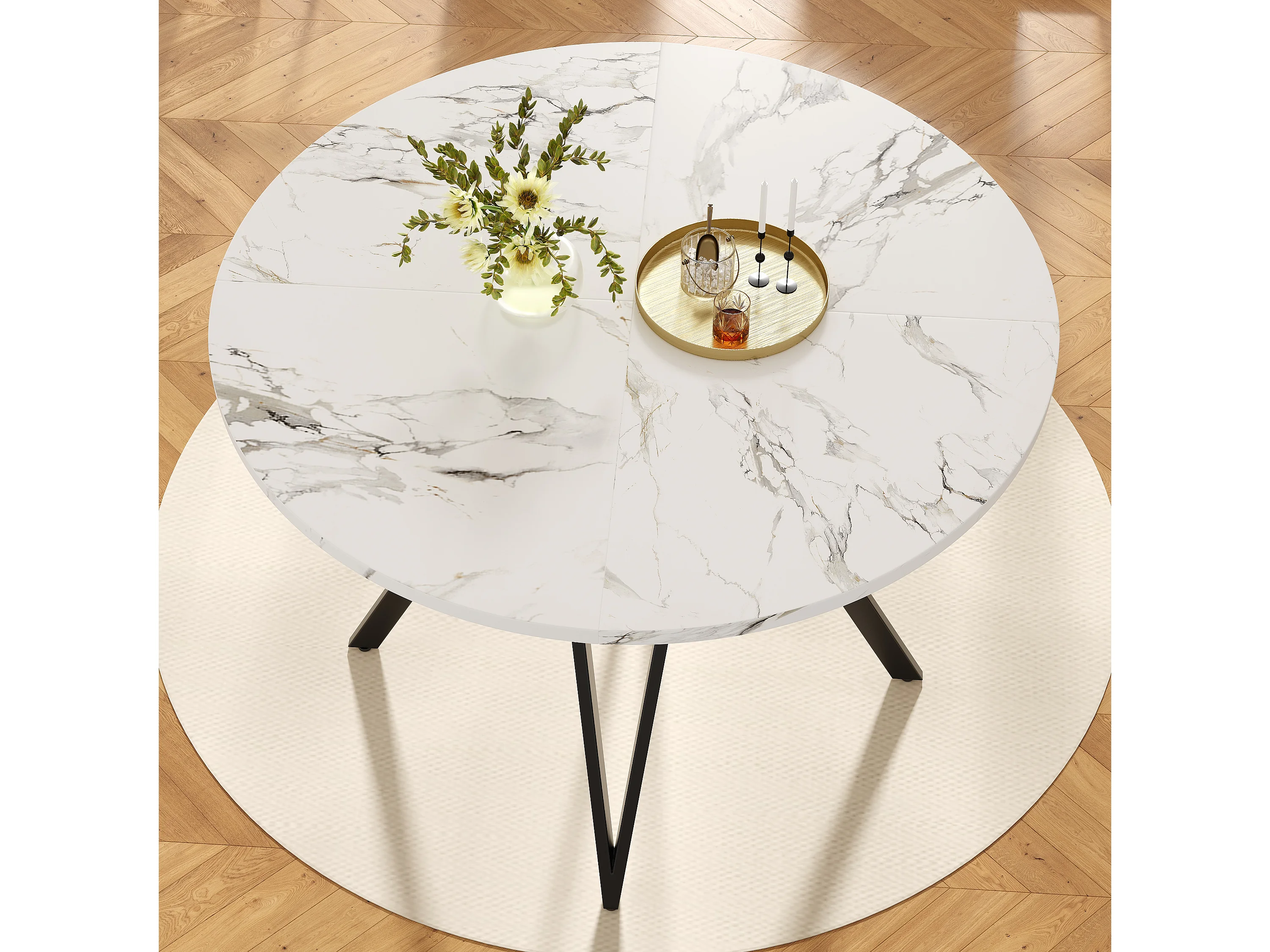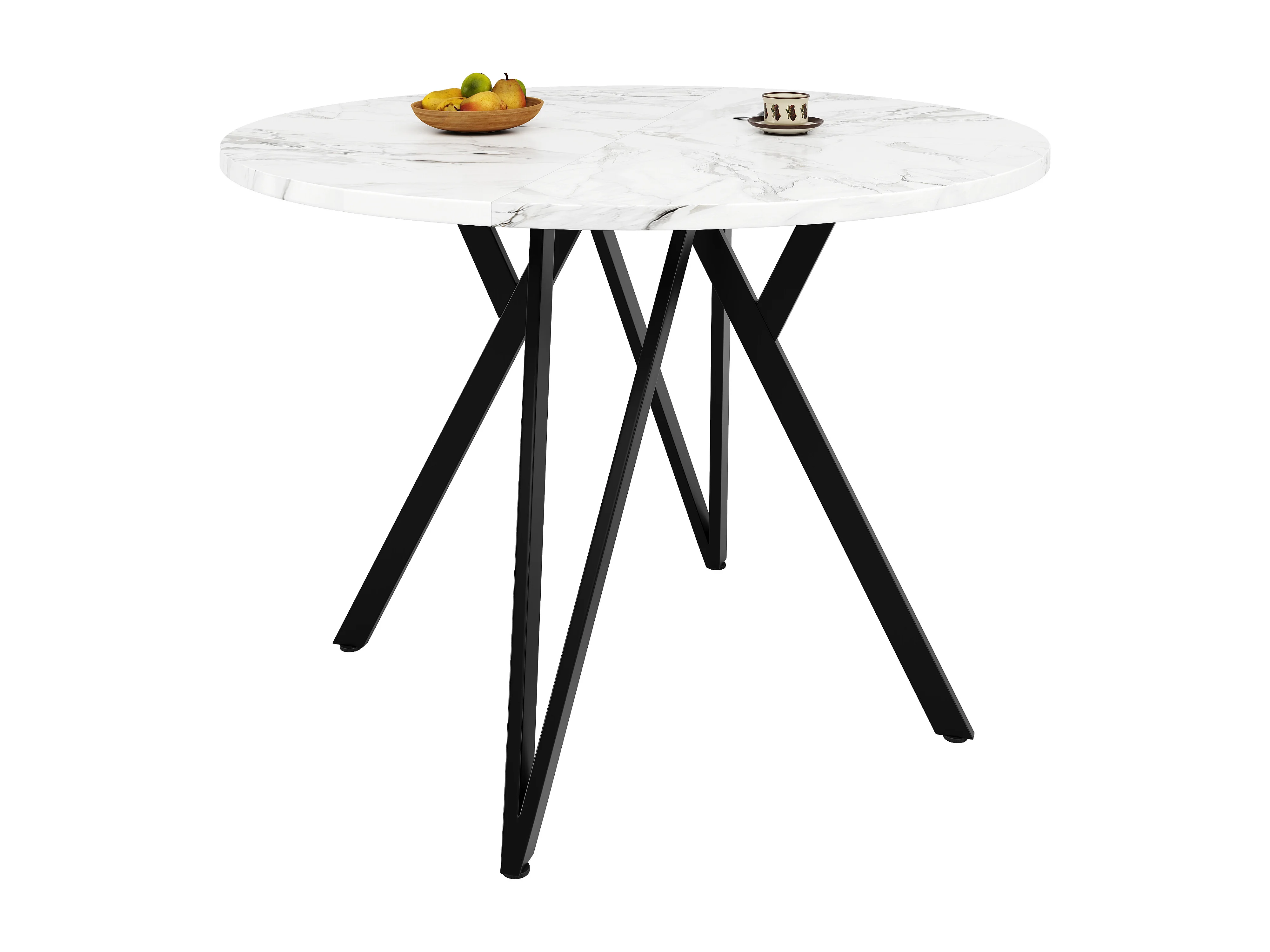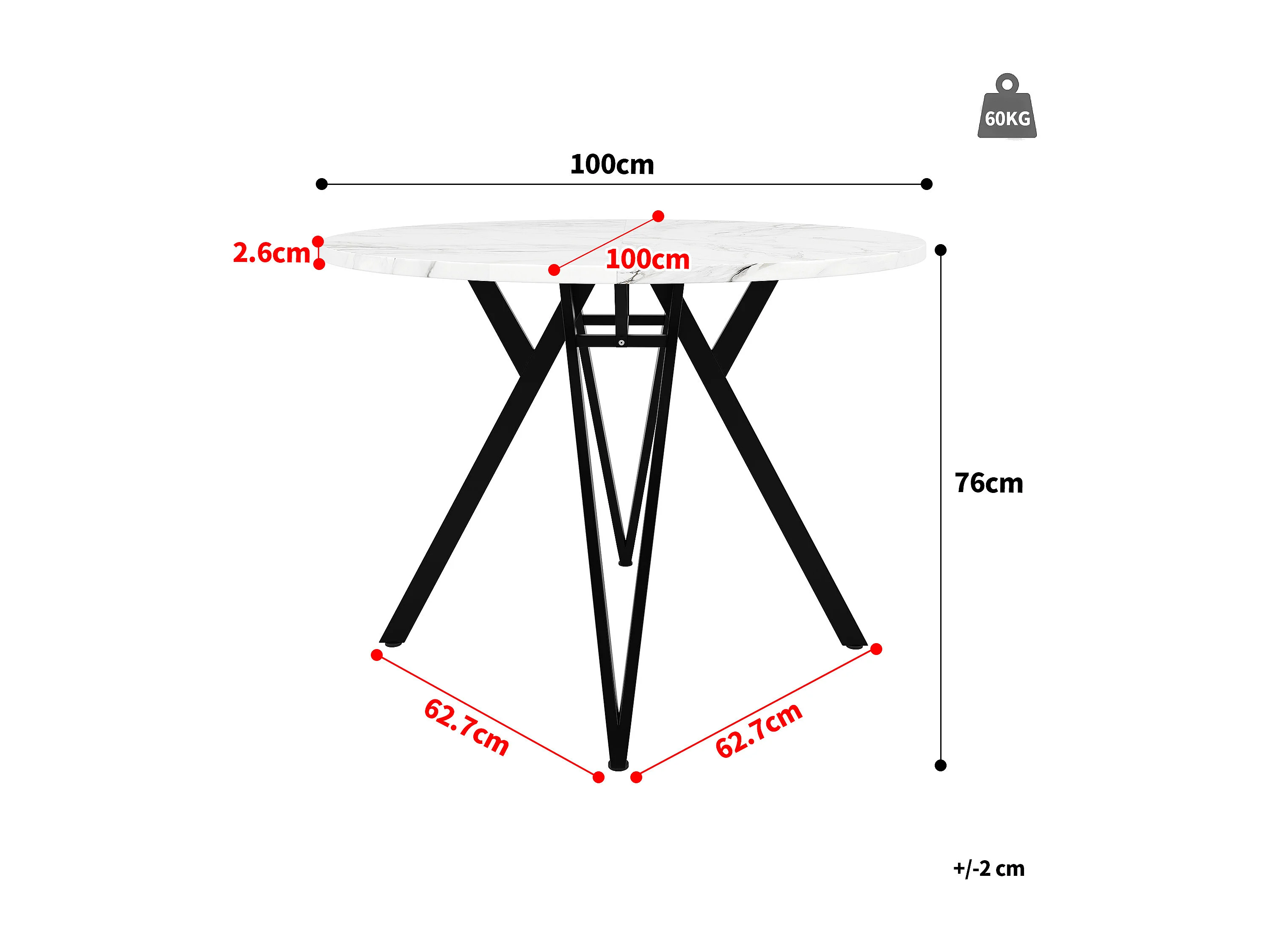 Table à manger ronde 100x100x76 cm, pieds réglables, structure stable, MDF imitation marbre noir