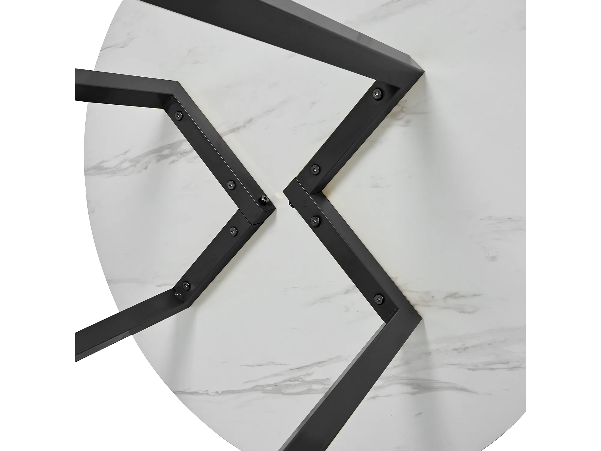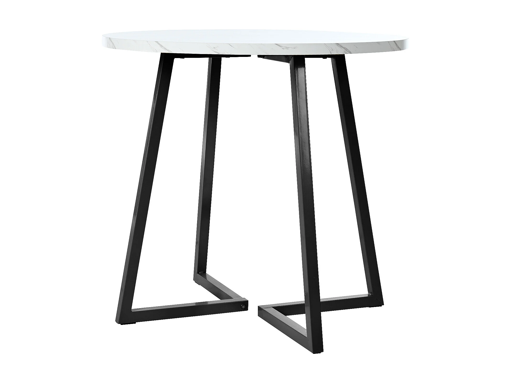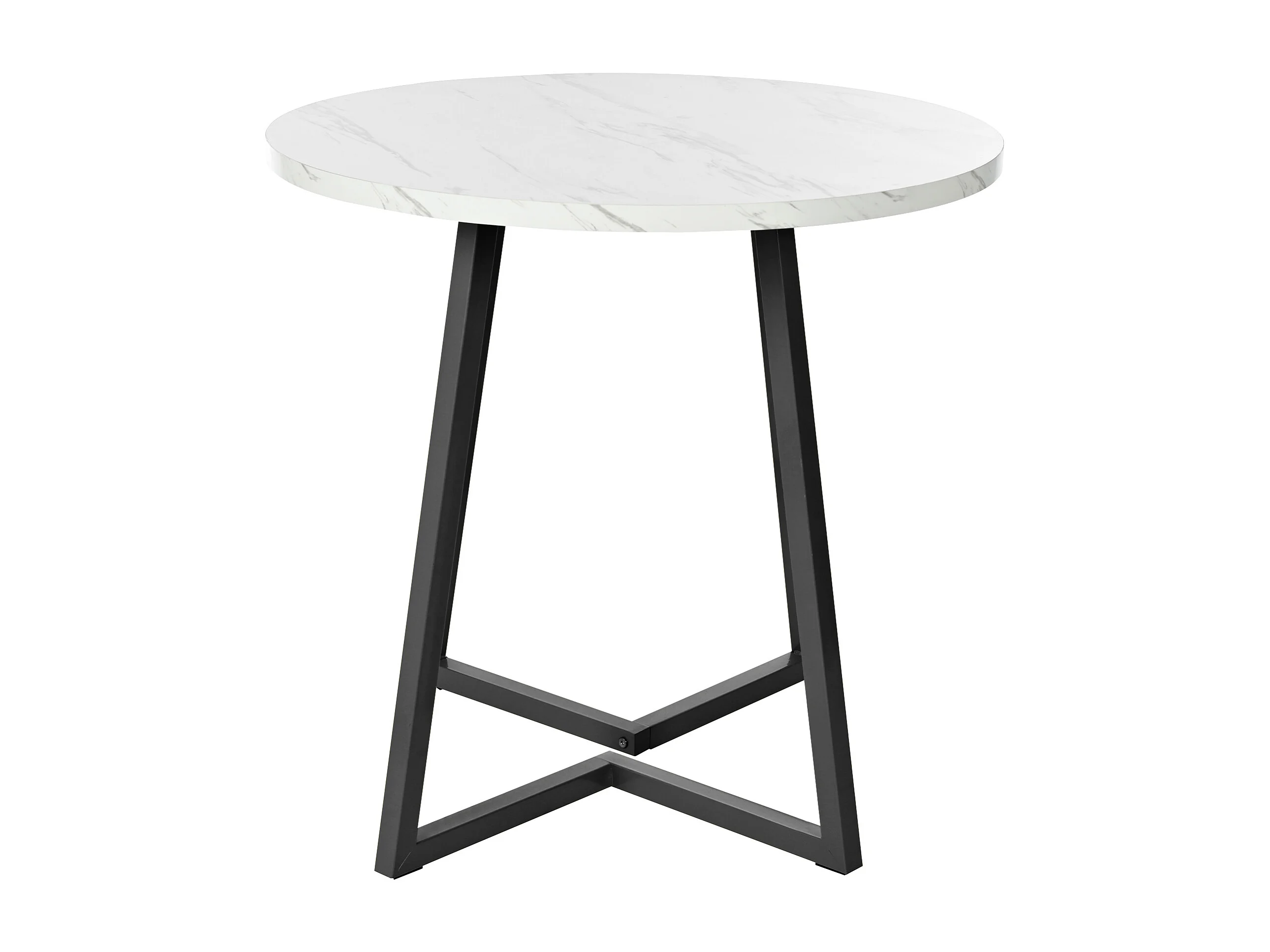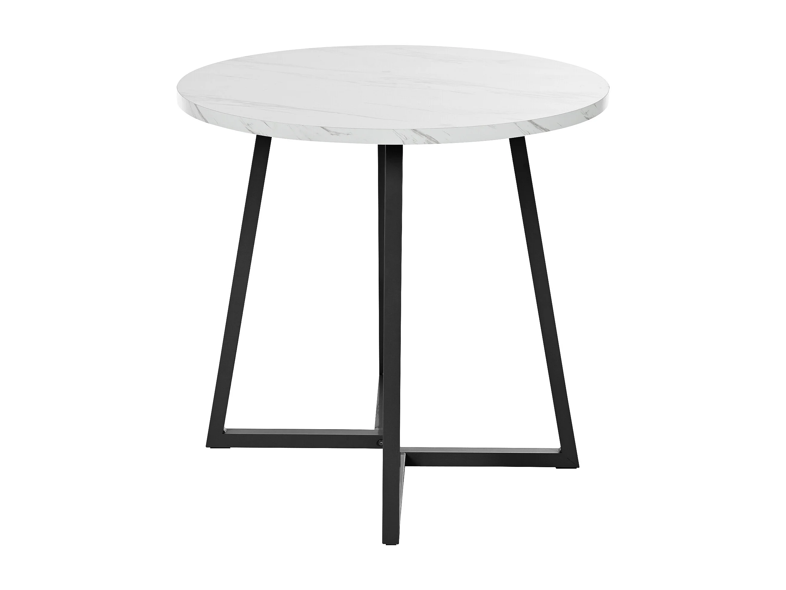 Table à manger ronde 80x80x75 cm, motif marbre, pieds réglables, structure en métal et plateau en MDF blanc
