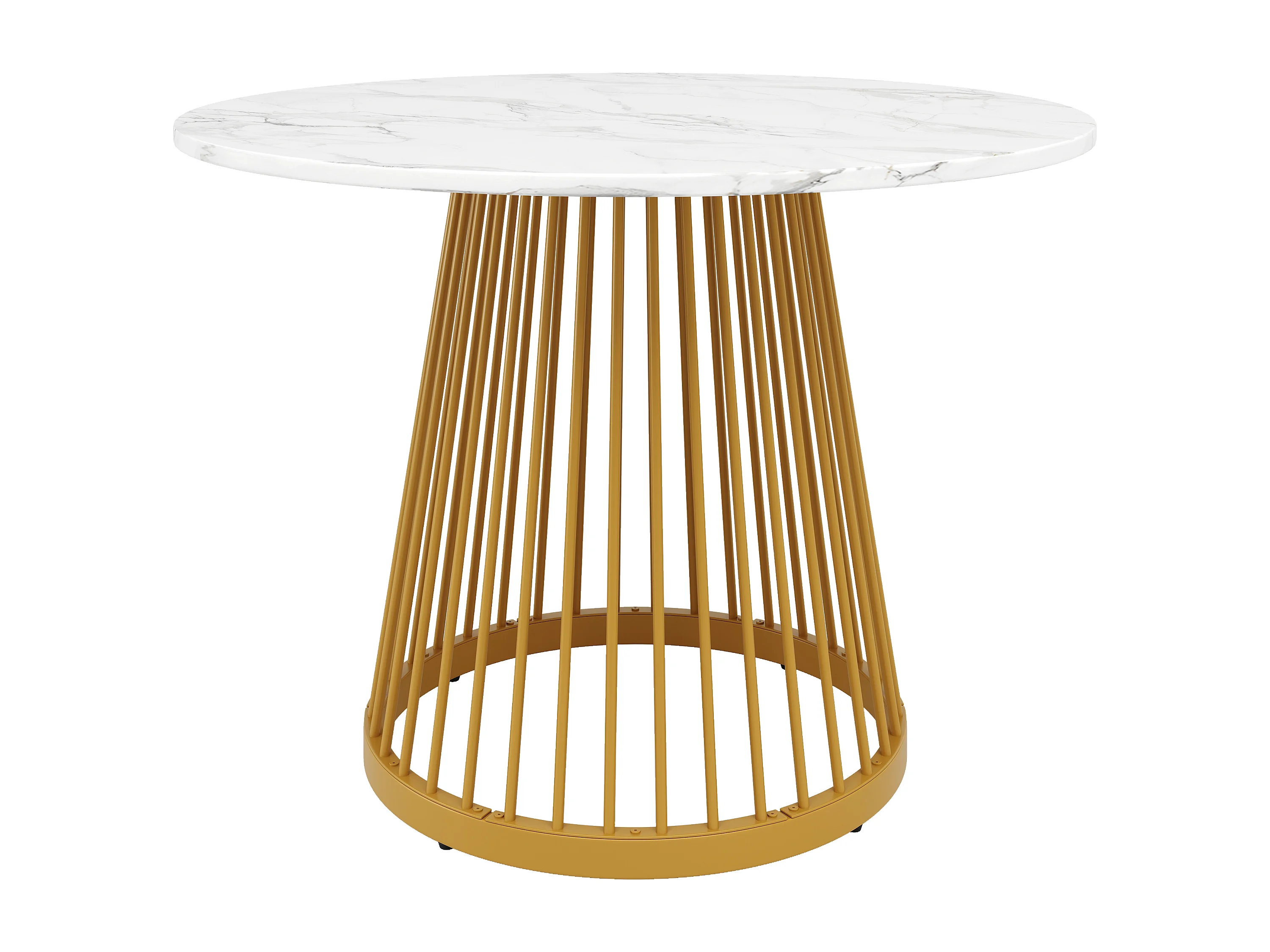 Table à manger ronde 80x80x76 cm pour 4 personnes - pied en métal doré - plateau mdf motif marbre blanc