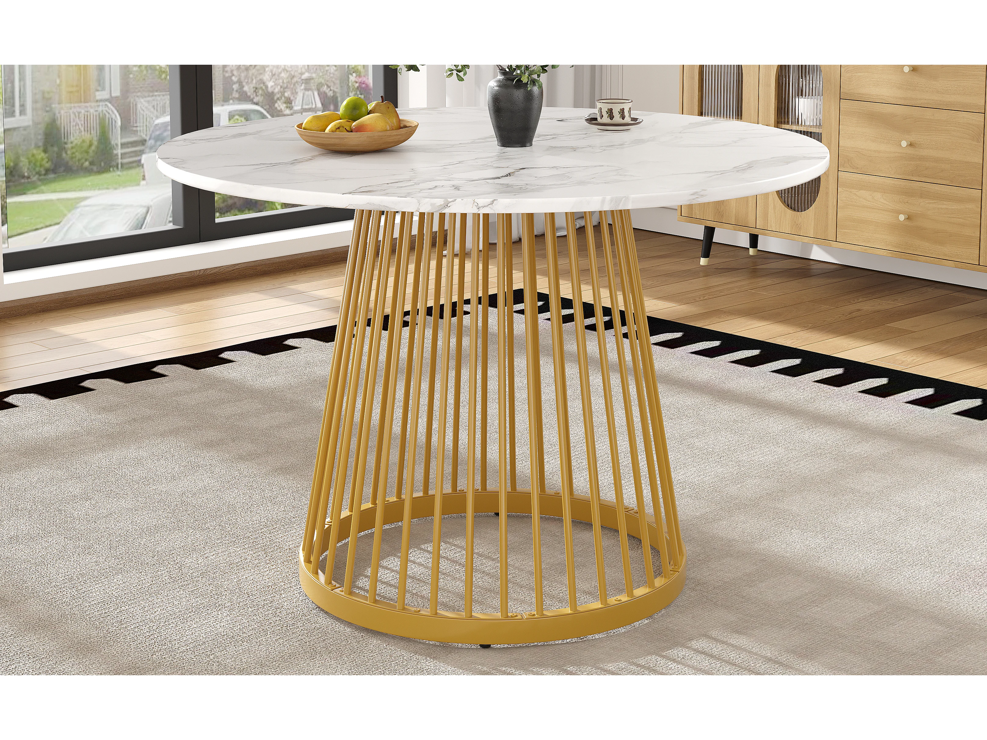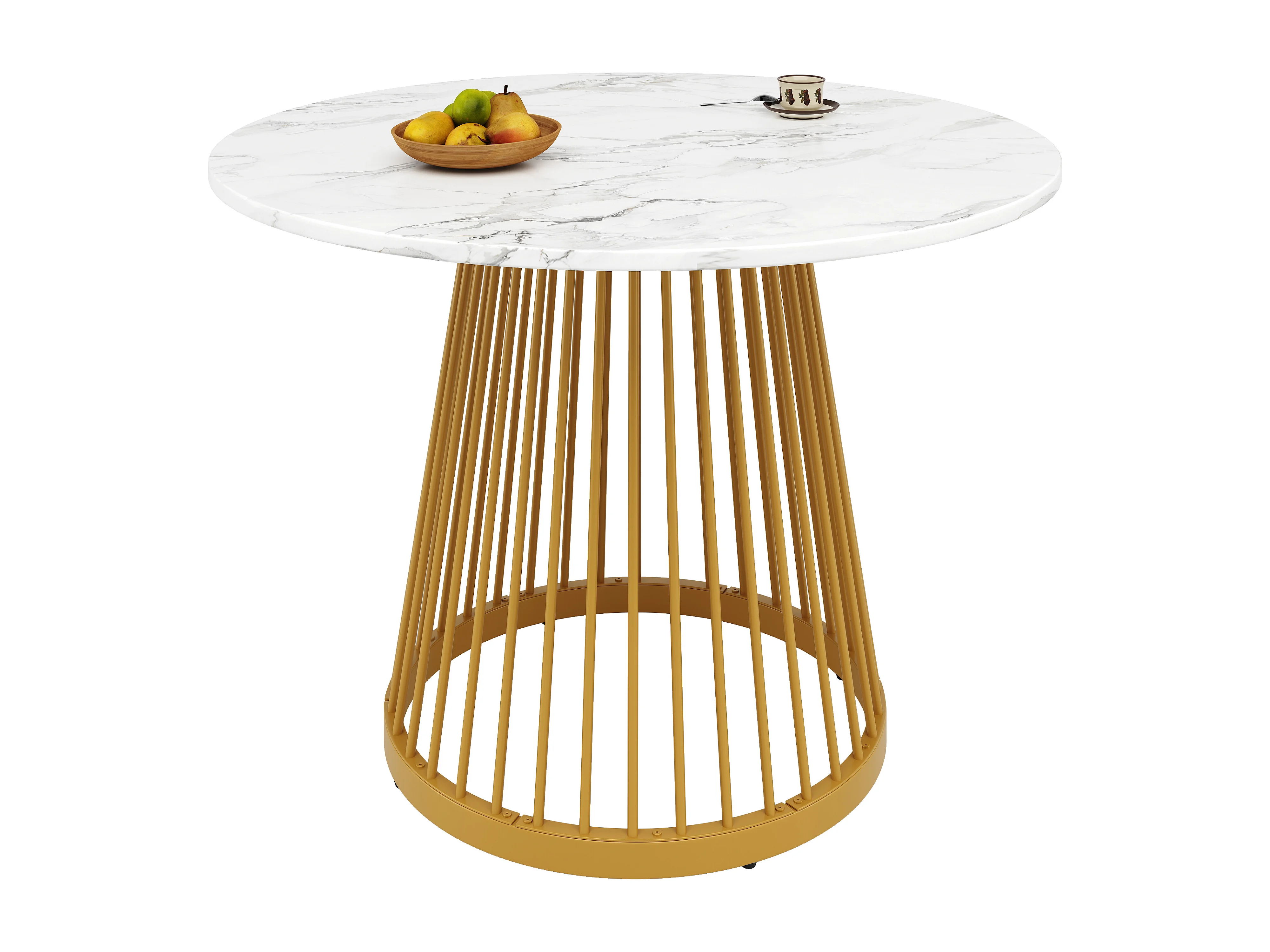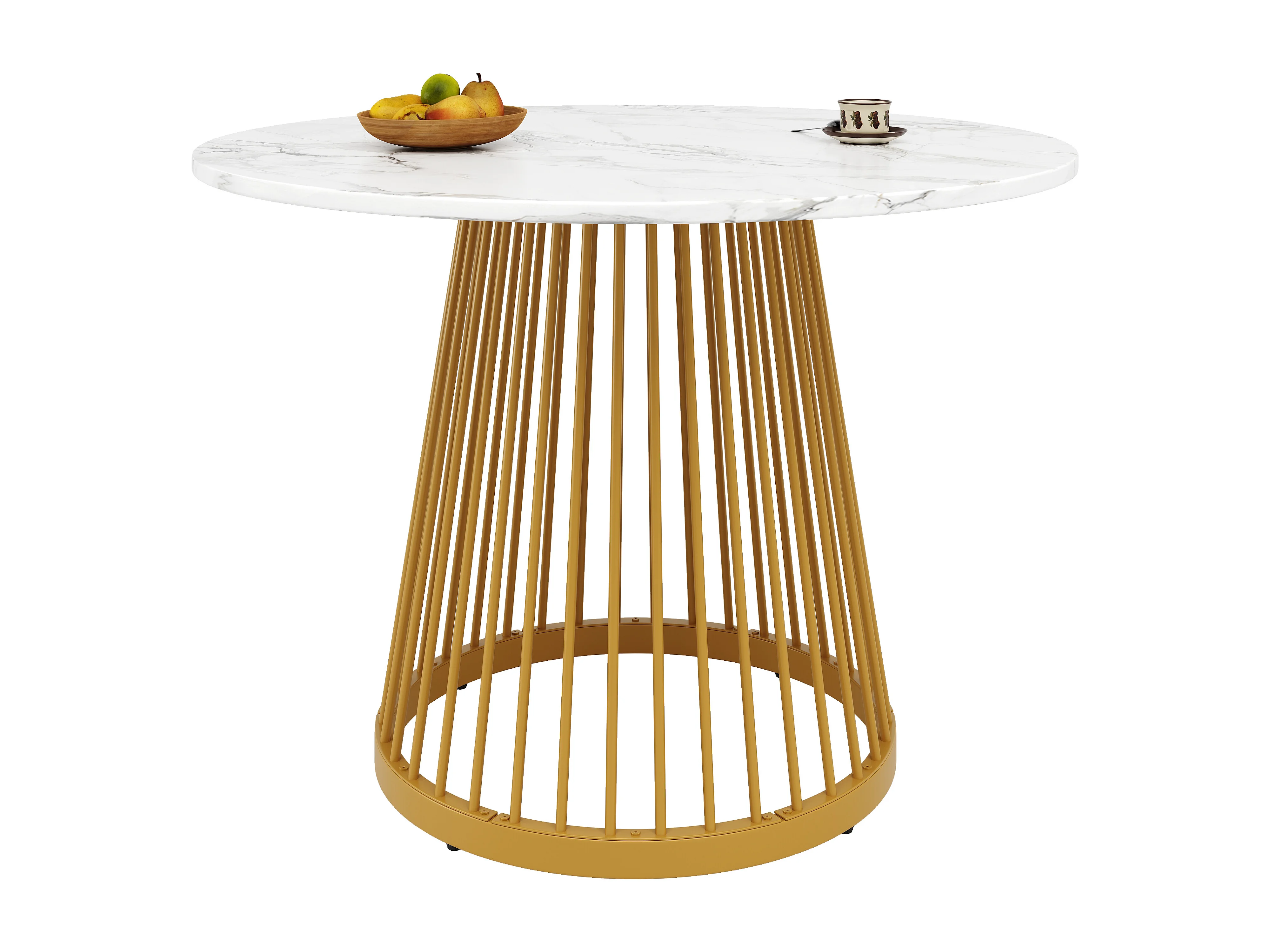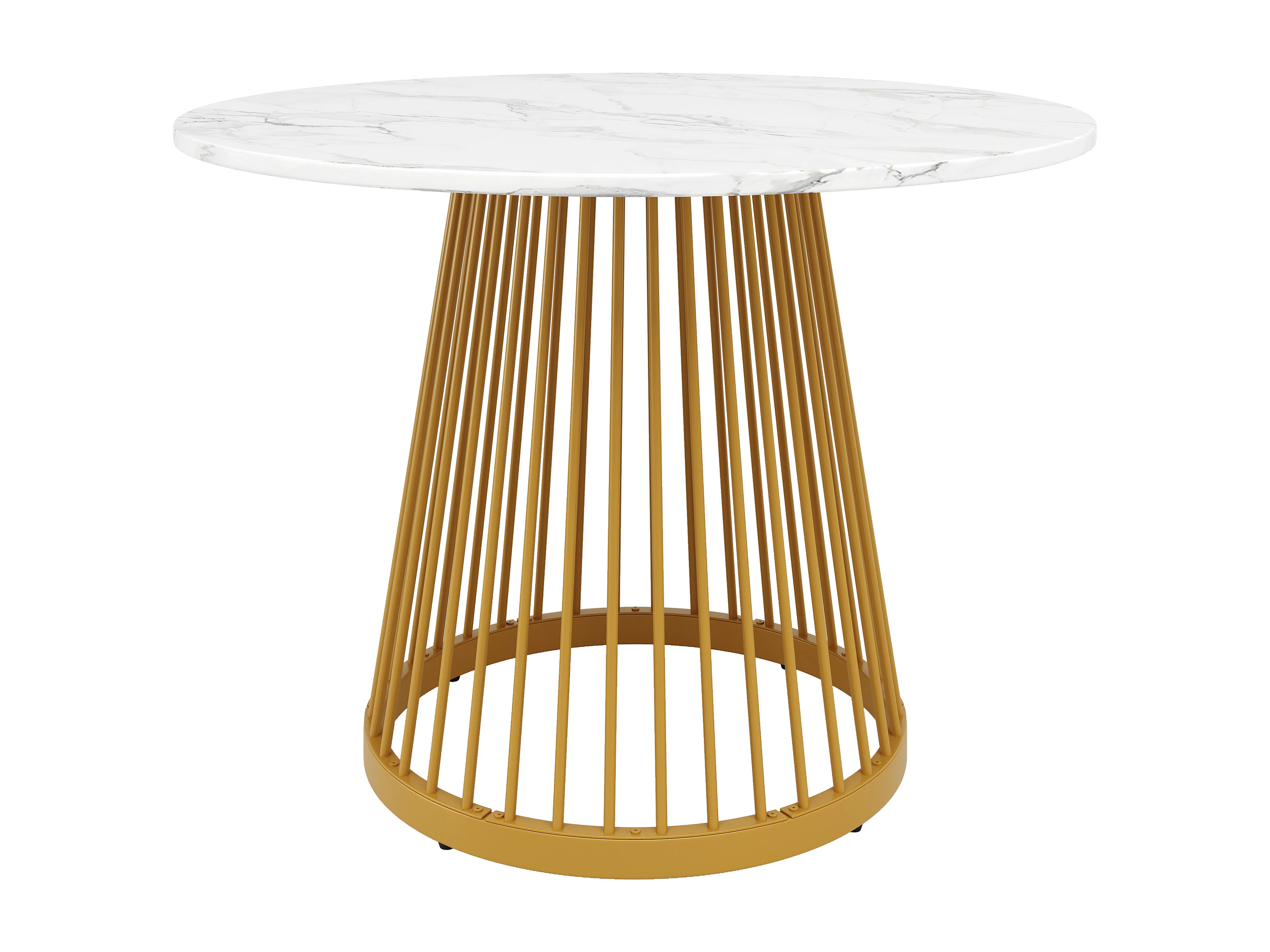 Table à manger ronde 80x80x76 cm, pieds réglables, entretien facile, MDF et métal blanc et doré
