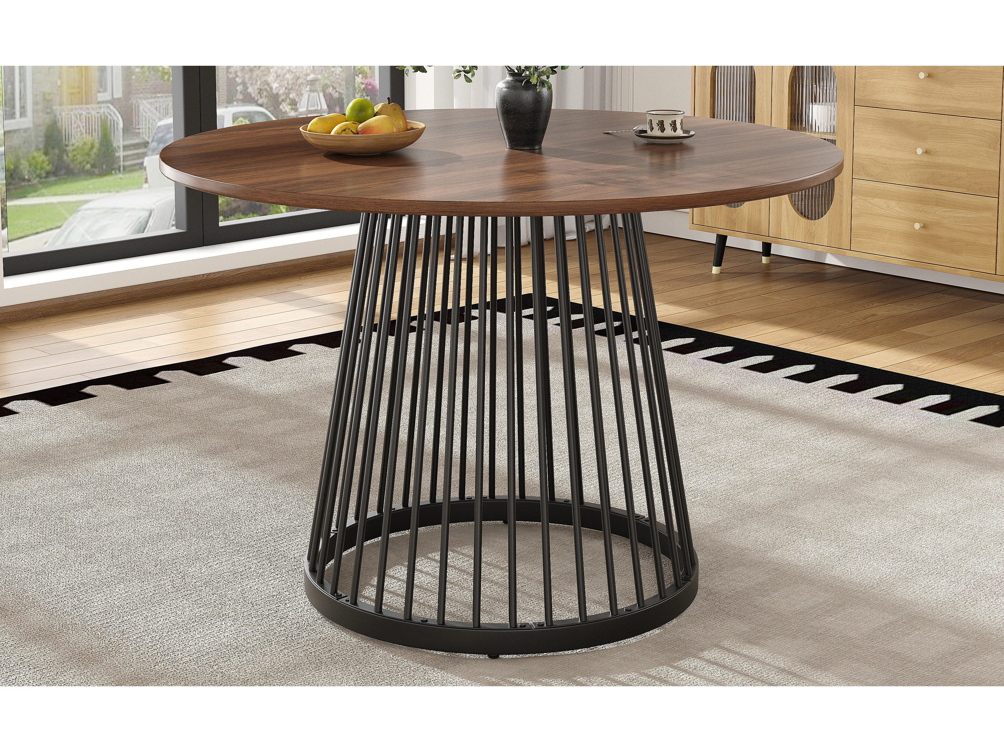 Table à manger ronde 80x80x76 cm, pieds réglables, usage polyvalent, MDF et métal, noyer et noir
