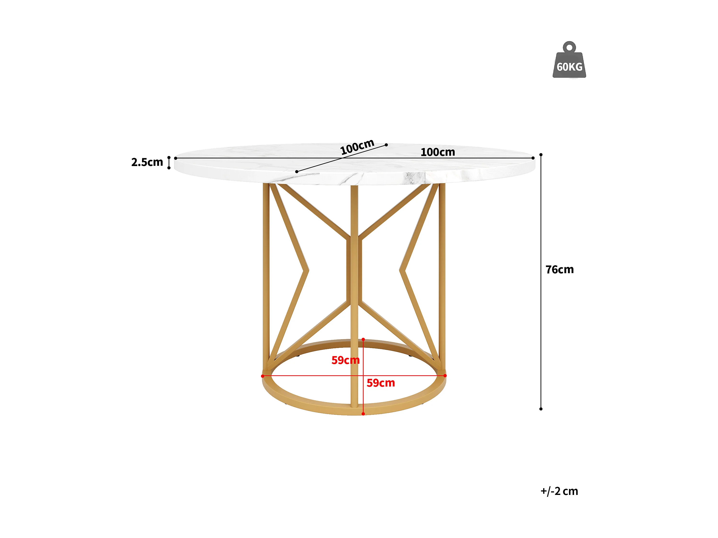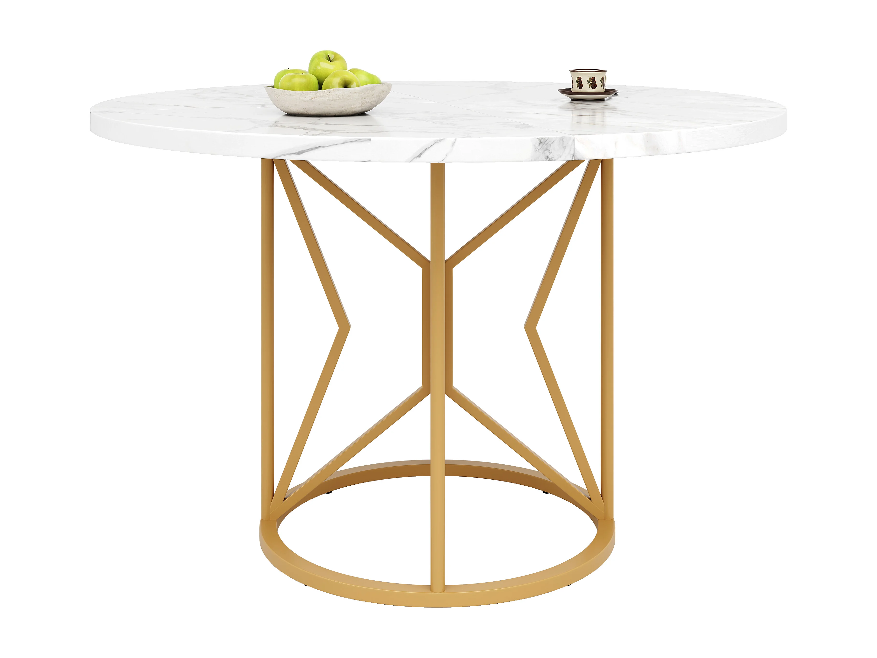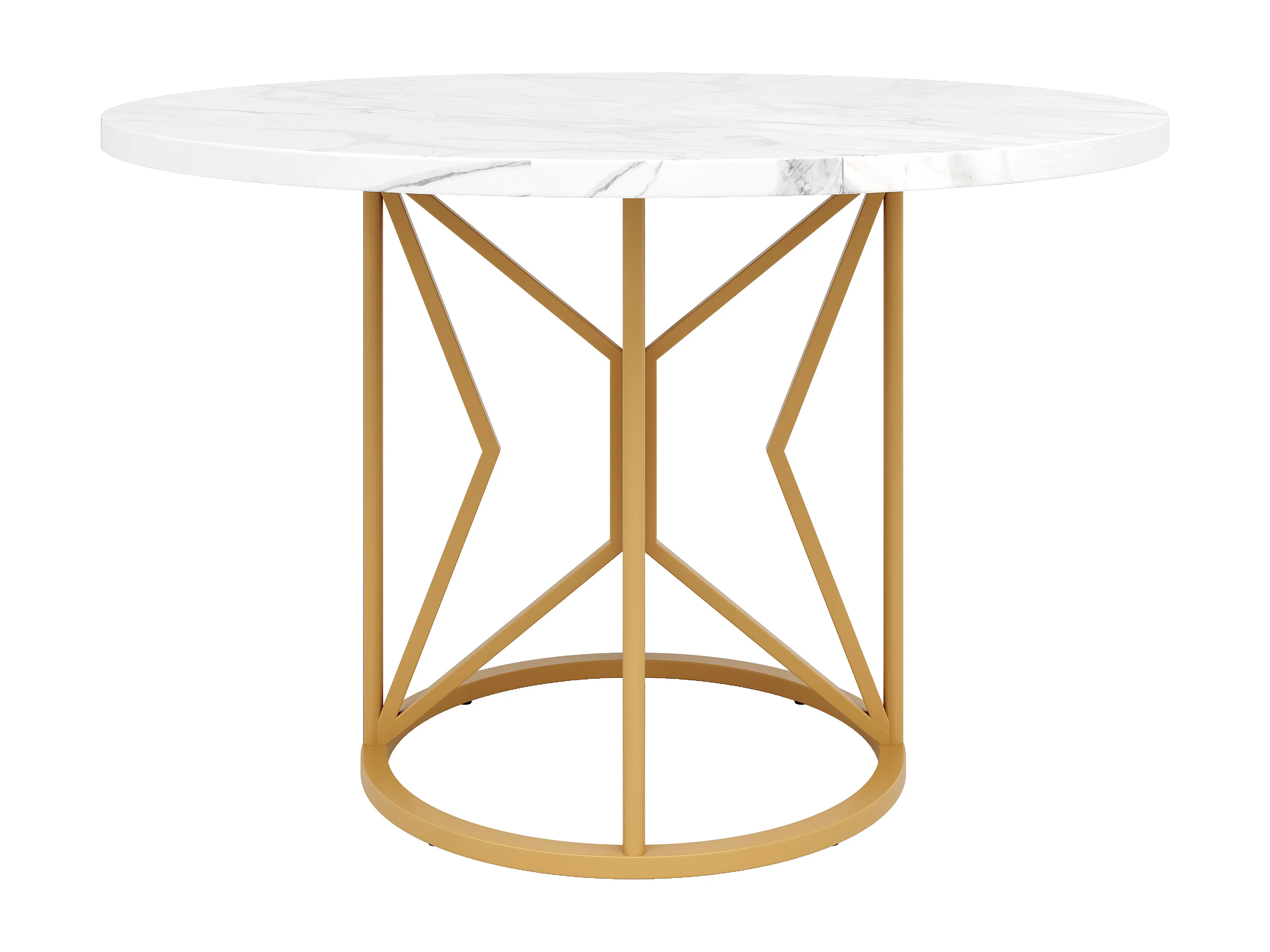 Table à manger ronde - Cadre en métal - placage à motif marbre - 2 à 6 personnes - Blanc & Doré