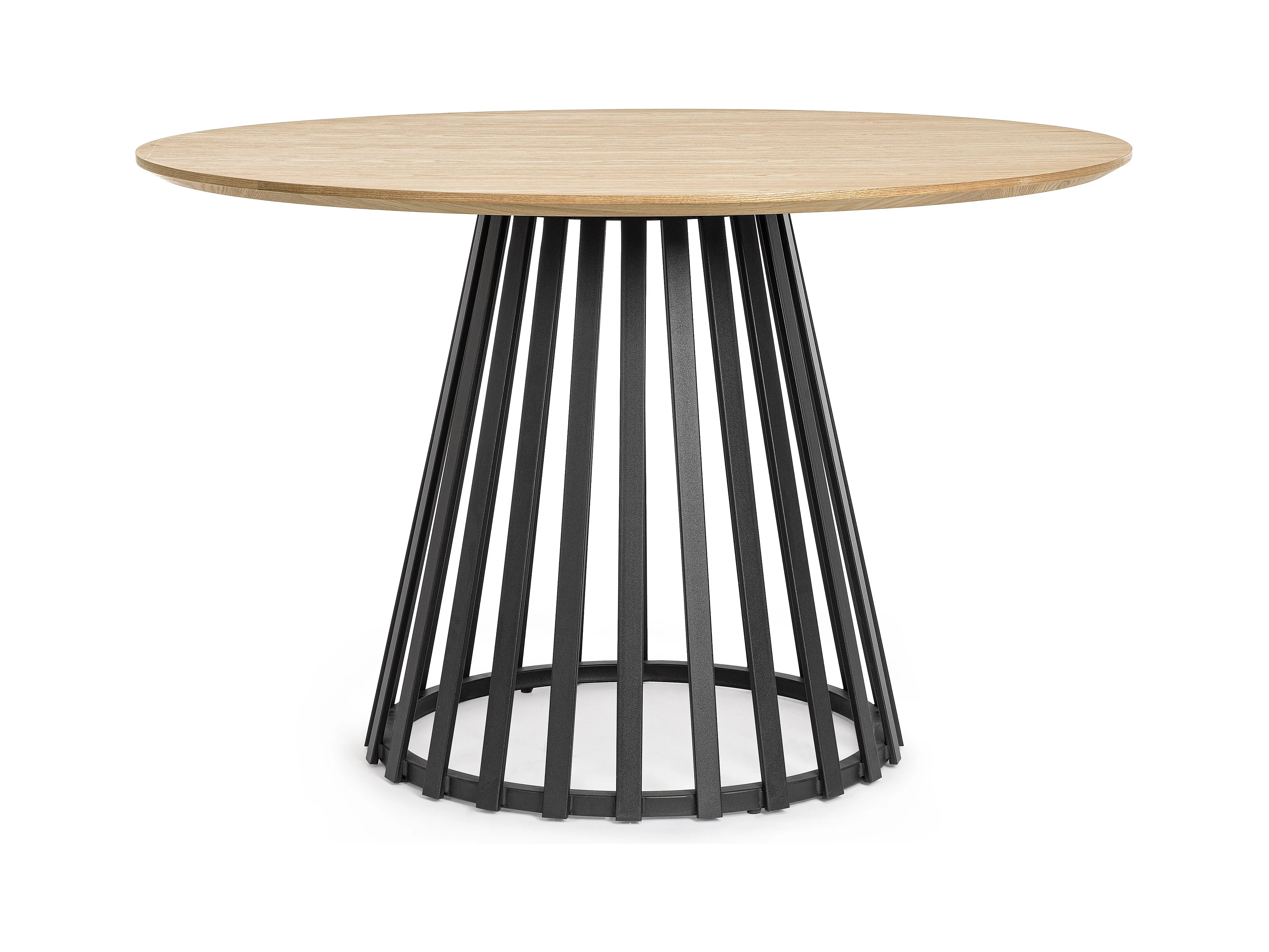 Table ronde design en bois et pieds en chêne massif naturel Bipola-Couleur Noir-Diamètre 119 cm