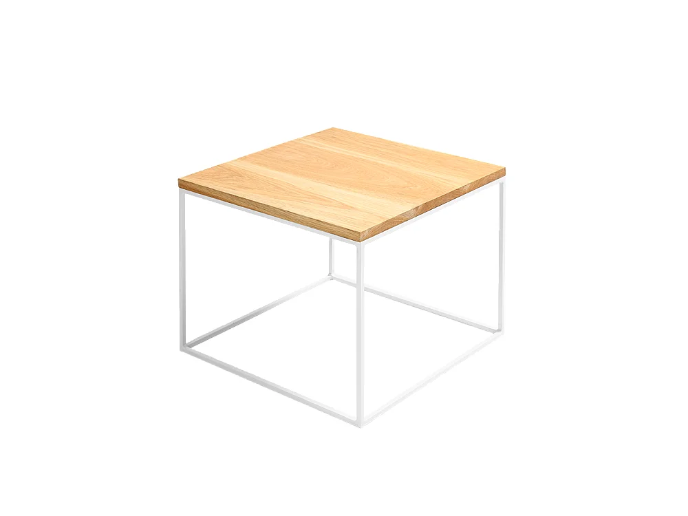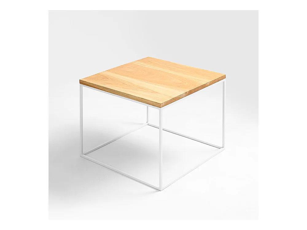 Table basse 0,5x0,5x0,45 m, placage chêne blanc, bois tensio, modèle 50