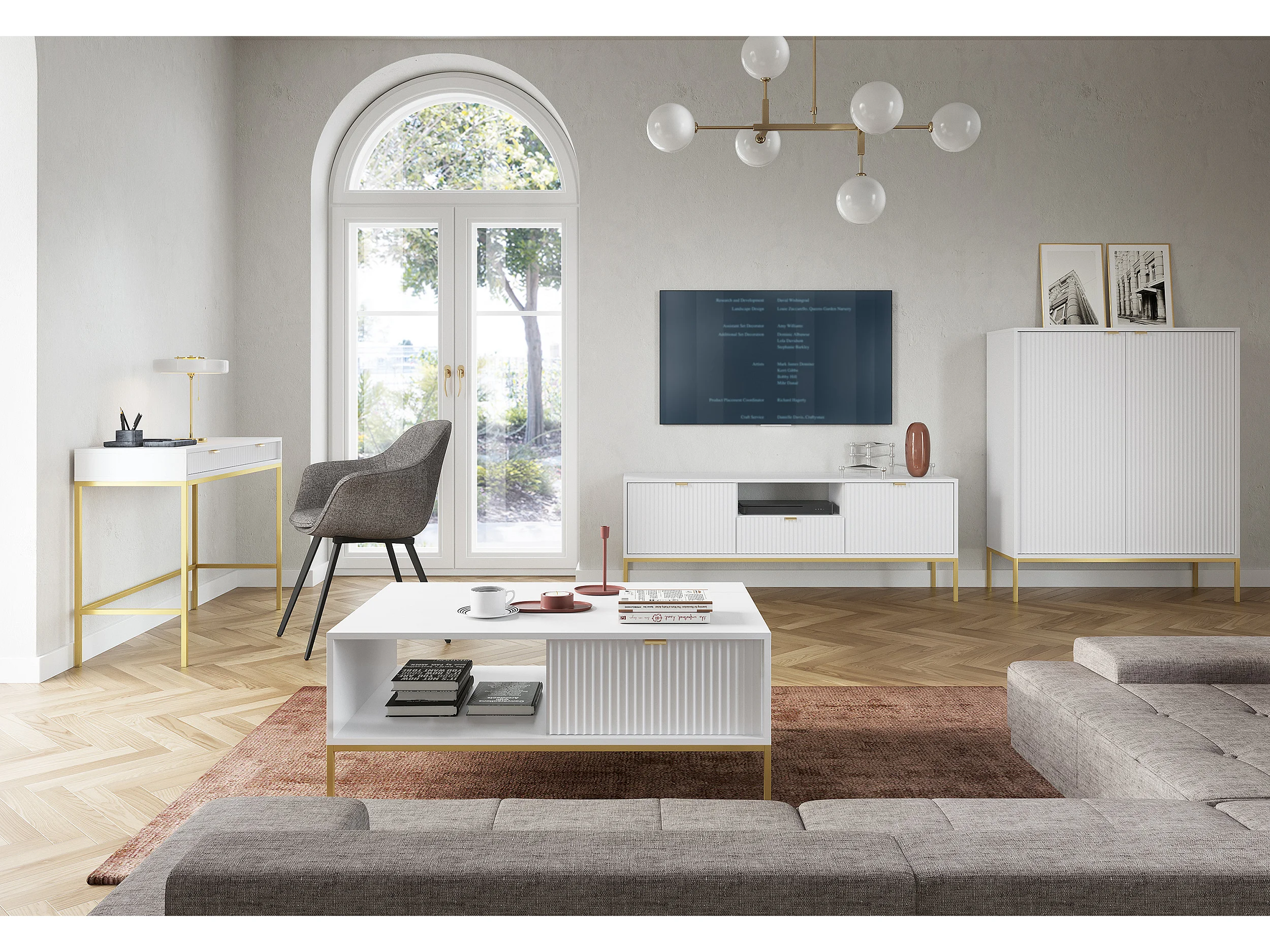 Table basse - 104x68 cm - blanc avec pieds dorés - VELLORE