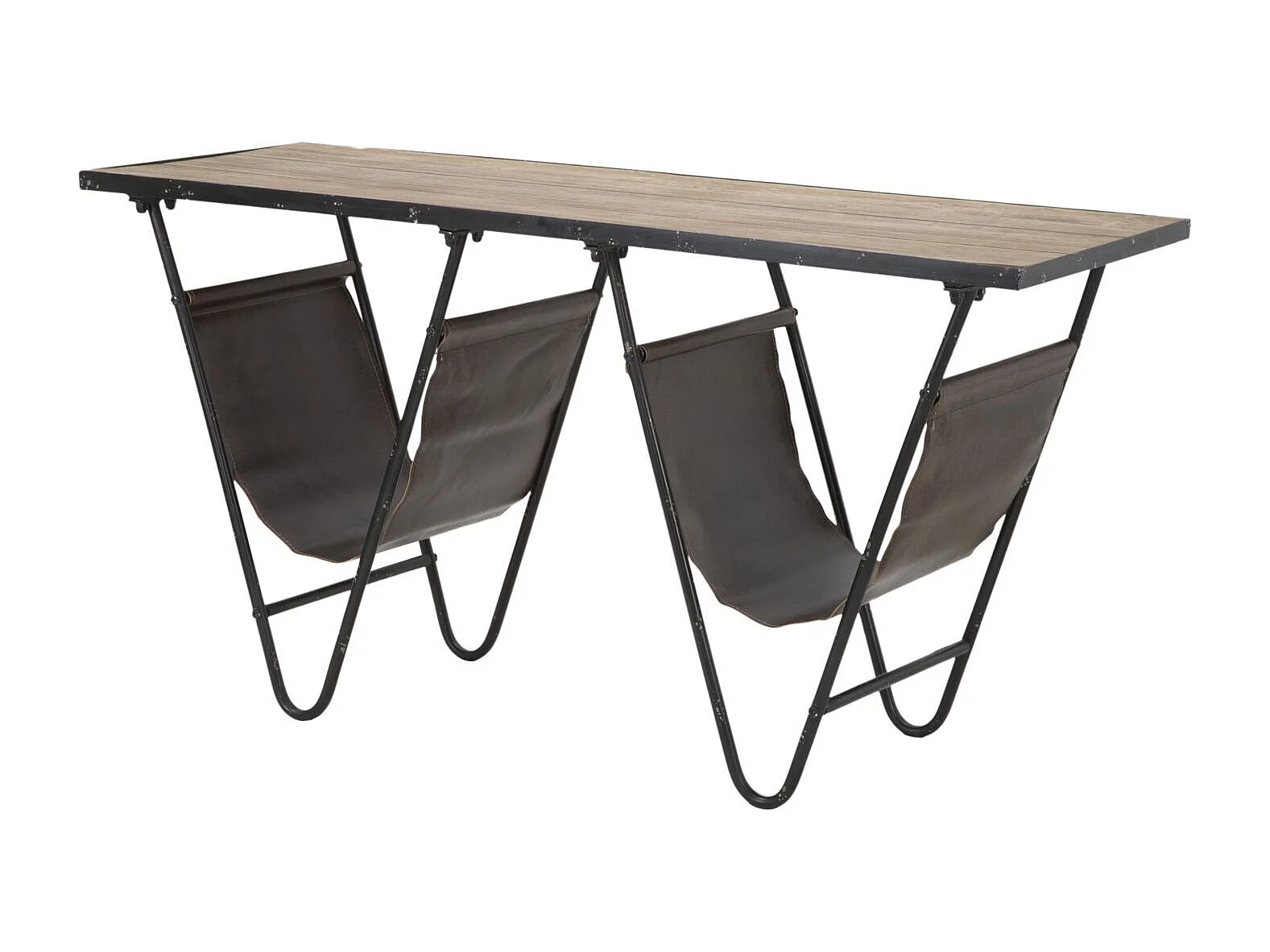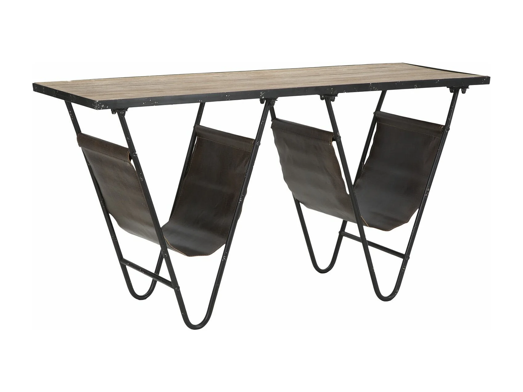 Table basse avec porte-revues en métal marron 120x43x62,5 cm