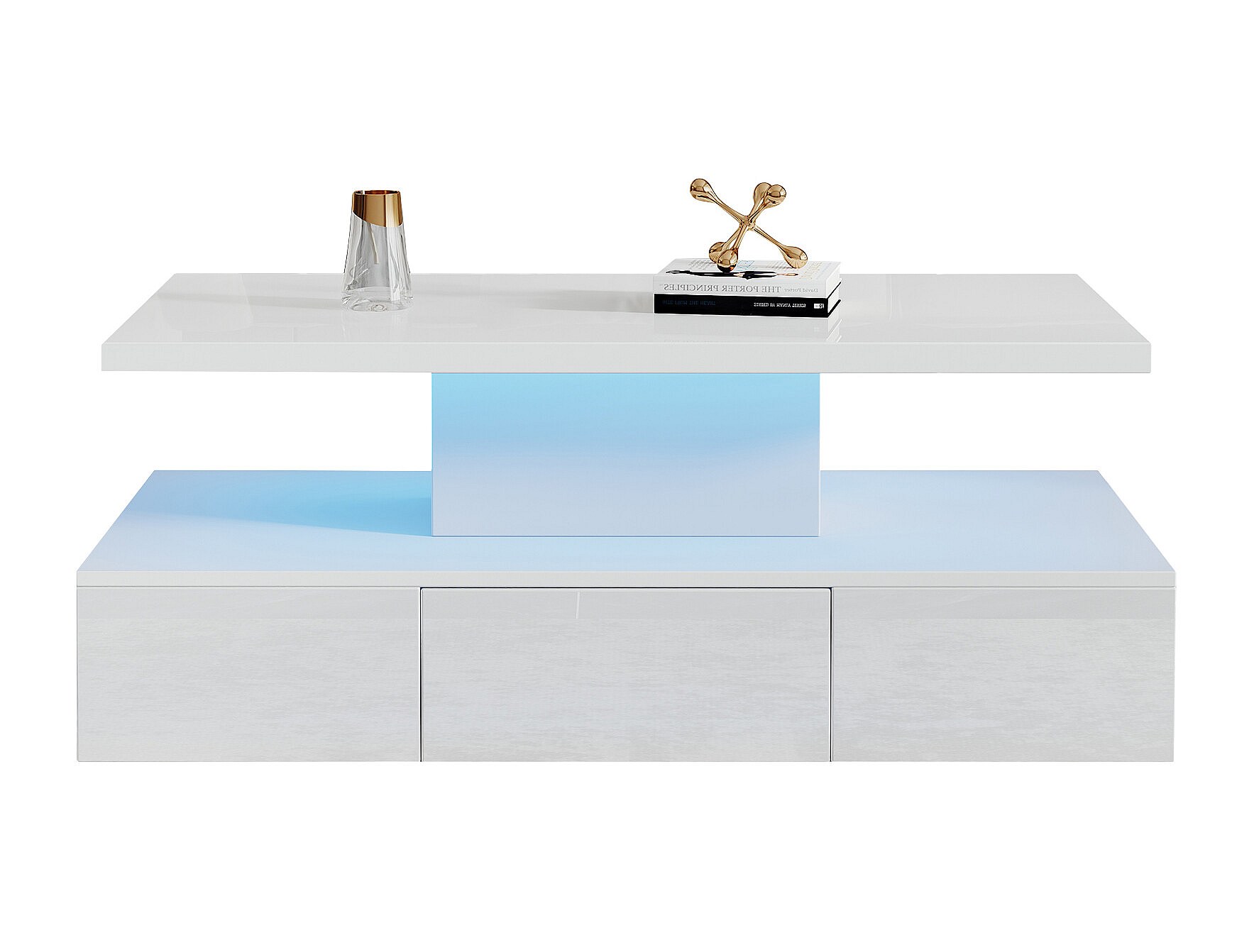 Table basse brillante - 100 x 50 x 40 cm - avec Leds + 2 portes + 1 tiroir - aggloméré - blanc