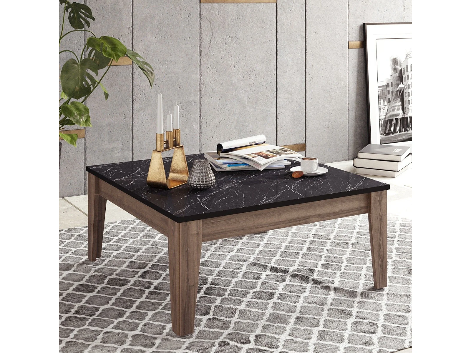 Table basse carré Villette 85x85cm Bois Naturel et Noir effet marbre